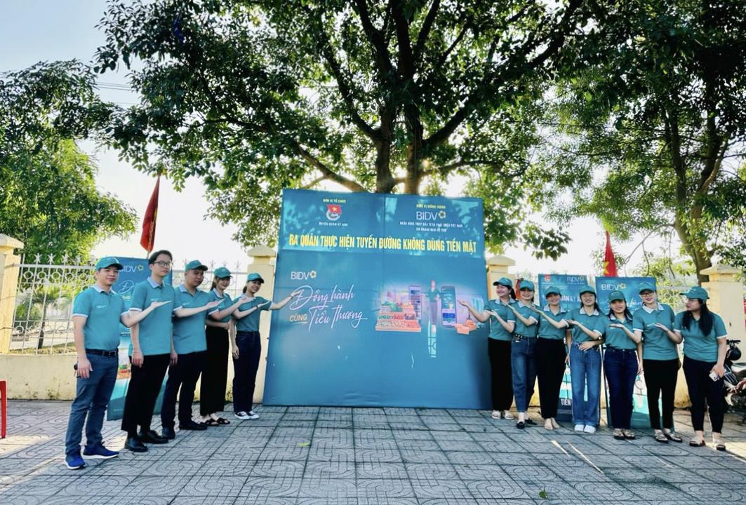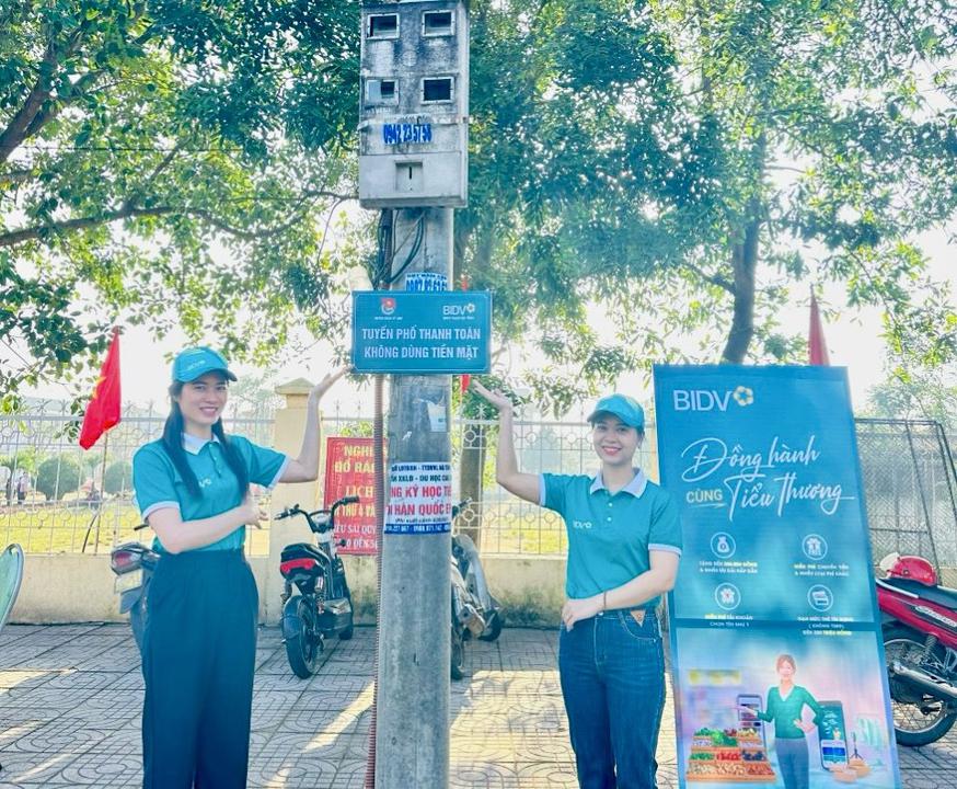 Thực hiện mô hình, Đoàn thanh niên BIDV Nam Hà Tĩnh đã gắn biển “Tuyến phố thanh toán không dùng tiền mặt”, "BIDV đồng hành cùng tiểu thương" tại các tuyến đường chí