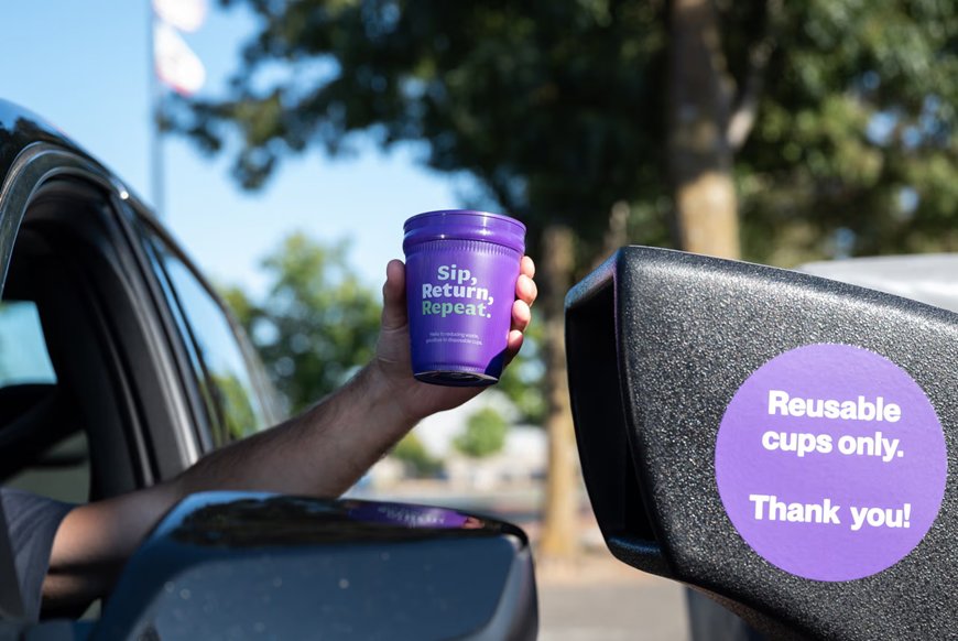 Mỗi sáng đến văn phòng, Sam Gearhard luôn ghé vào cửa hàng Avid Coffee ở thành phố Petaluma, bang California, Mỹ để mua cà phê mang đi. Nhưng thay vì nhận cà phê đựng trong cốc dùng một lần rất đỗi quen thuộc, anh không ngần ngại chọn chiếc cốc nhựa màu tím nổi bật với khẩu hiệu in trên thân “Nhấp môi, Hoàn trả, Lặp lại”. Sau khi sử dụng xong, anh sẽ trả lại cốc tại một thùng thu gom đặt trên đường về nhà. “Uống cà phê nóng mà không bị bỏng tay. Đó là điểm cộng đầu tiên. Không bỏ đi sau mỗi lần dùng. Đó là điểm cộng thứ hai”, The Guardian dẫn lời Gearhard chia sẻ.