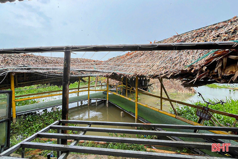 Khu nhà sạp lớn từng là nơi đón một lúc cả trăm thực khách, tấp nập vào ra trong những ngày cao điểm, sau bão số 10, mái bị tốc hoàn toàn, khung giằng gãy đổ, bàn ghế nằm ngổn ngang. Muốn hoạt động trở lại, toàn bộ khu vực này gần như phải làm lại từ đầu.