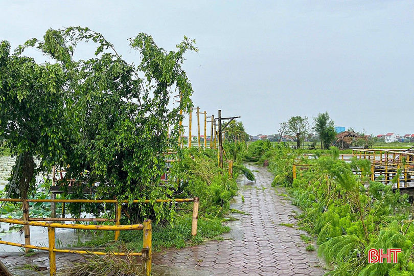 Sau cơn bão số 10, Khu sinh thái ven đô nổi tiếng ở Hà Tĩnh - Thôn Trang Liên Nhật (thuộc HTX Nông nghiệp và dịch vụ tổng hợp Liên Nhật) ở phường Trần Phú bị sập mái nhà, cây cối gãy đổ, đồ trang trí vỡ vụn. Cảnh quan vốn nên thơ giờ phủ đầy dấu vết cuồng phong, ước tính thiệt hại sơ bộ lên tới hàng trăm triệu đồng.
