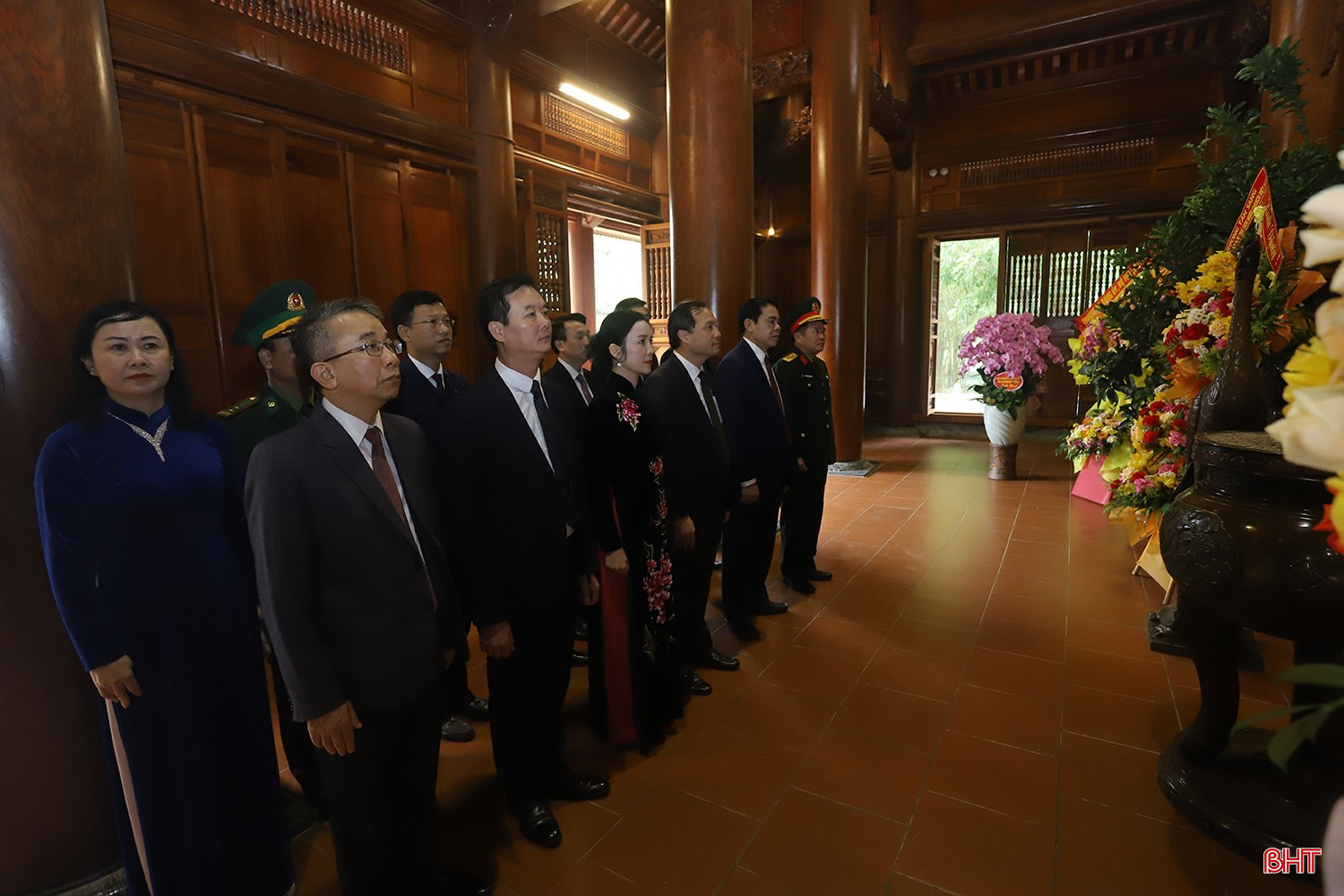 Đoàn đại biểu Tỉnh ủy, HĐND, UBND, Ủy ban MTTQ tỉnh Hà Tĩnh cũng đã đến đặt vòng hoa, dâng hương tưởng niệm Chủ tịch Hồ Chí Minh tại Khu di tích Kim Liên (huyện Nam Đàn, tỉnh Nghệ An).