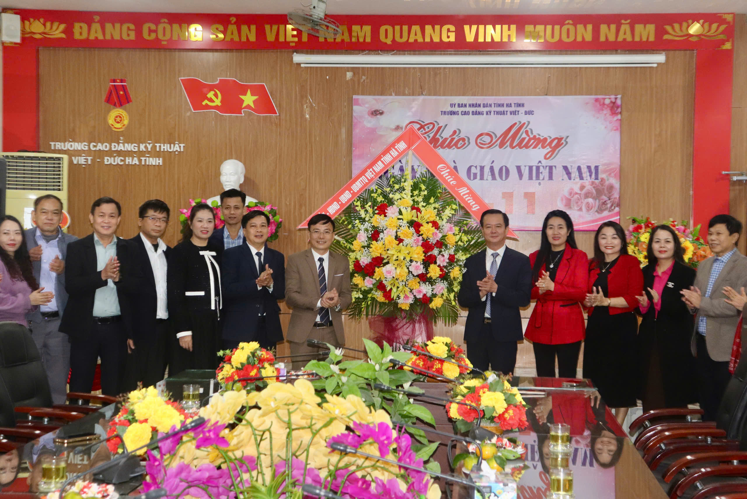 Nhân kỷ niệm 43 năm Ngày Nhà giáo Việt Nam (20/11/1982 - 20/11/2025), sáng 19/11, đoàn lãnh đạo HĐND, UBND, Ủy ban MTTQ tỉnh do Phó Chủ tịch thường trực UBND tỉnh Trần Báu Hà dẫn đầu đã tới chúc mừng Trường Đại học Hà Tĩnh, Trường Cao đẳng Kỹ thuật Việt - Đức. Cùng đi có Phó Chủ tịch HĐND tỉnh Nguyễn Thị Việt Hà, Phó Bí thư chuyên trách Đảng ủy UBND tỉnh Nguyễn Thị Hà Tân, lãnh đạo Sở GD&ĐT, Sở Nội vụ, Văn phòng UBND tỉnh.