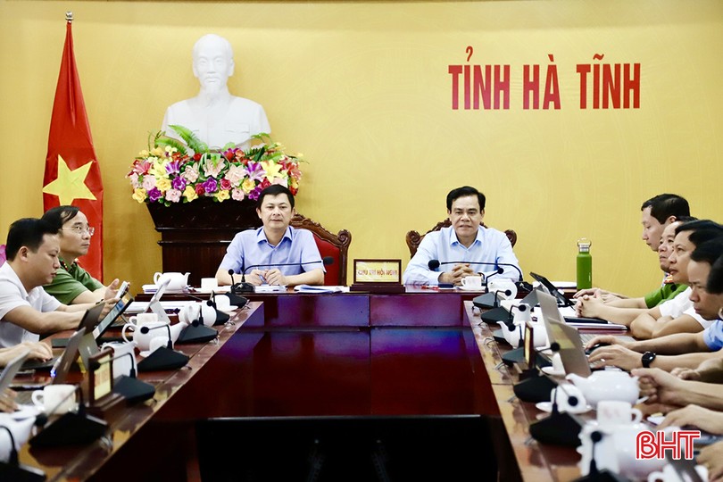 Chủ tịch UBND tỉnh Võ Trọng Hải - Tổ trưởng Tổ công tác Đề án 06 tỉnh và Phó Chủ tịch UBND tỉnh Lê Ngọc Châu điều hành điểm cầu Hà Tĩnh.
