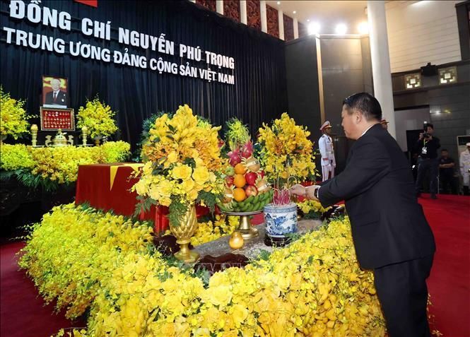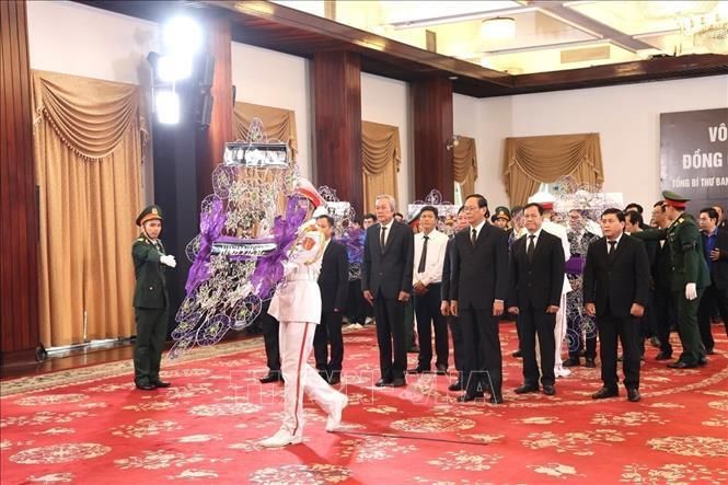 Lễ viếng, lễ truy điệu đồng chí Nguyễn Phú Trọng được tổ chức cùng thời gian trên tại Hội trường Thống Nhất, TP Hồ Chí Minh và tại quê nhà xã Đông Hội, huyện Đông Anh, TP Hà Nội.
