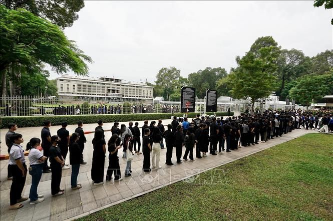Dòng người xếp hàng chờ vào viếng Tổng Bí thư Nguyễn Phú Trọng tại Hội trường Thống Nhất, thành phố Hồ Chí Minh. Ảnh: Anh Tuấn/TTXVN