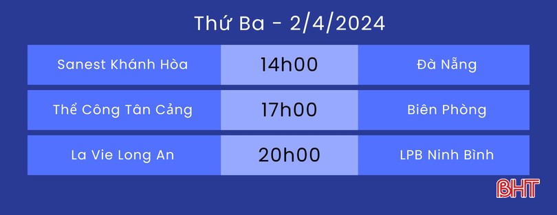 Trong ngày thi đấu hôm nay (2/4), trên sân Nhà thi đấu TDTT Hà Tĩnh sẽ tiếp tục diễn ra 3 trận đấu: Sanest Khánh Hòa gặp Đà Nẵng, Thể Công Tân Cảng gặp Biên Phòng và La Vie Long An gặp LPBank Ninh Bình.