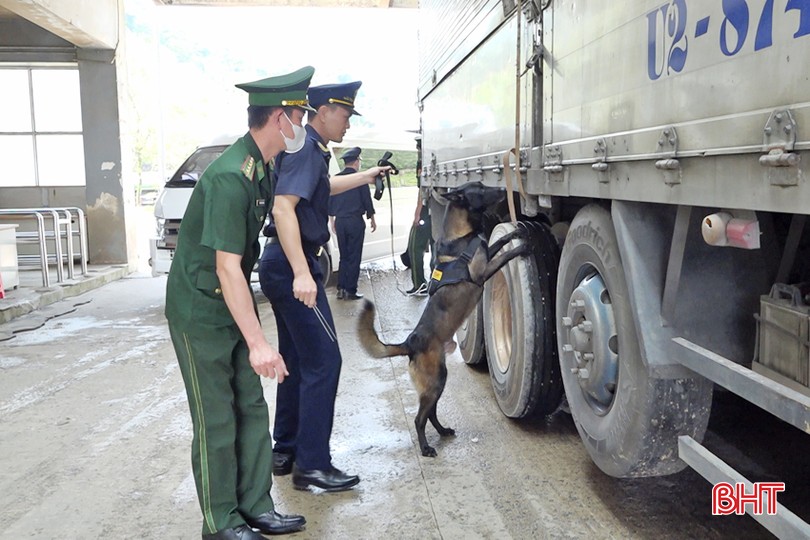 BĐBP Cầu Treo phối hợp với các lực lượng chức năng sử dụng chó nghiệp vụ để phòng chống các loại tội phạm, buôn lậu, gian lận thương mại.