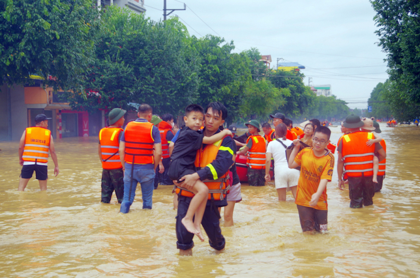Lực lượng chức năng tỉnh Thái Nguyên di dời người dân vùng lũ đến nơi an toàn