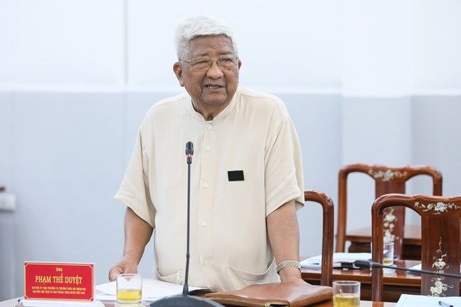 Nguyên Chủ tịch UBTƯ MTTQ Việt Nam Phạm Thế Duyệt phát biểu tại Hội thảo.