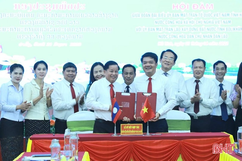 Lãnh đạo Ủy ban MTTQ tỉnh Hà Tĩnh và Ủy ban Mặt trận Lào xây dựng đất nước tỉnh Bolikhămxay ký kết hợp tác tháng 6/2023.