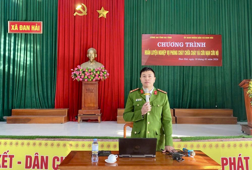 Phòng Cảnh sát PCCC và CNCH phối hợp với UBND xã Đan Hải, Công an xã Đan Hải tổ chức lớp huấn luyện nghiệp vụ PCCC và CNCH cho lãnh đạo, cán bộ, công nhân viên xã, lực lượng được phân công thực hiện nhiệm vụ PCCC và CNCH, cùng người dân trên địa bàn xã Đan Hải, tỉnh Hà Tĩnh.