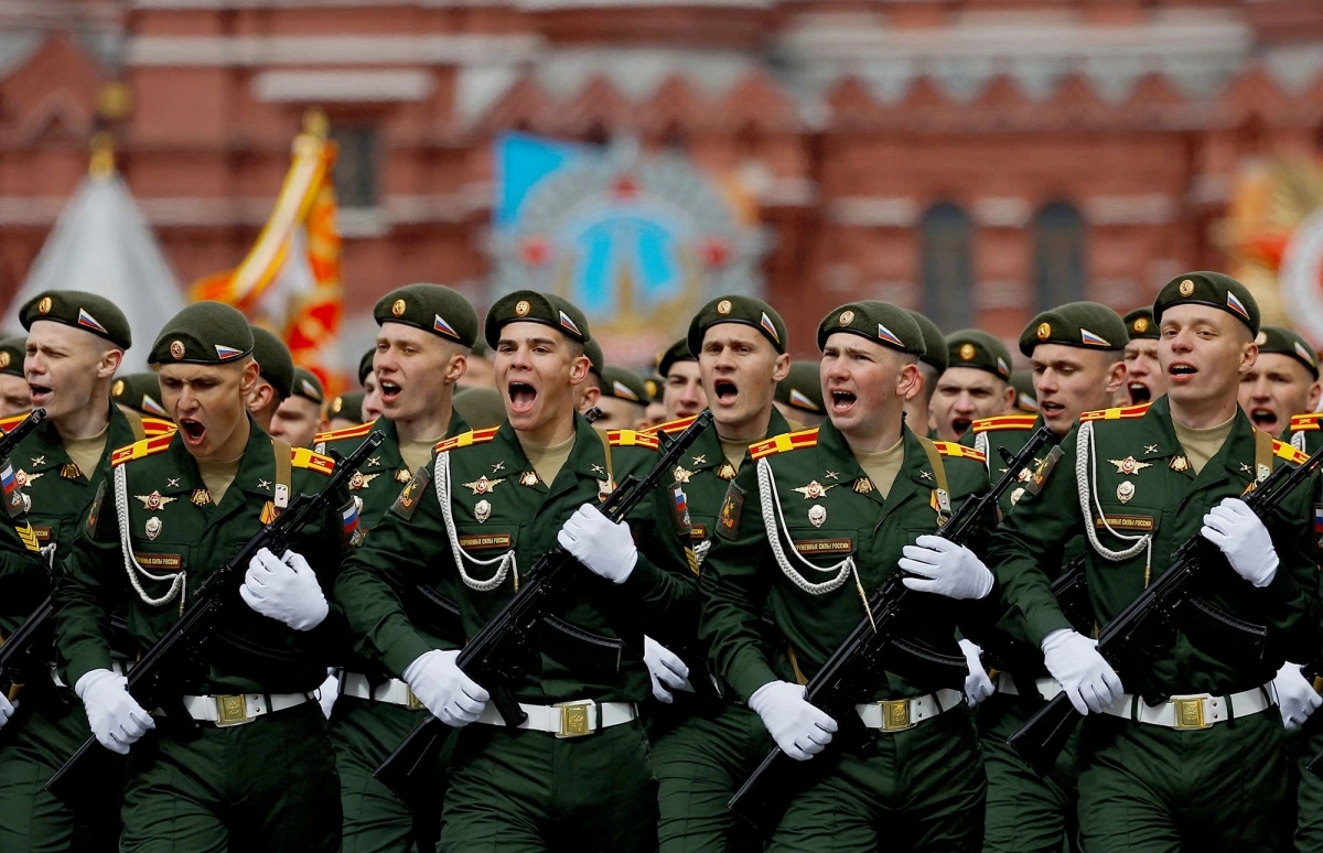 Quân đội Nga diễu hành trong lễ duyệt binh Ngày Chiến thắng tại Quảng trường Đỏ ở Moscow, Nga vào ngày 9/5. Ảnh: Reuters