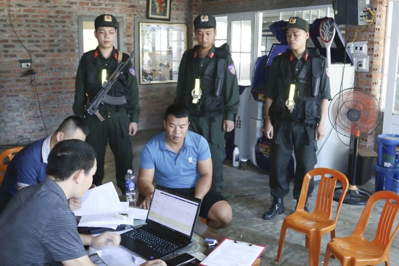 Các đối tượng trong đường dây đánh bạc dưới hình thức cá độ bóng đá 6.000 tỷ đồng bị Công an Hà Tĩnh phối hợp với các đơn vị triệt phá. Ảnh tư liệu