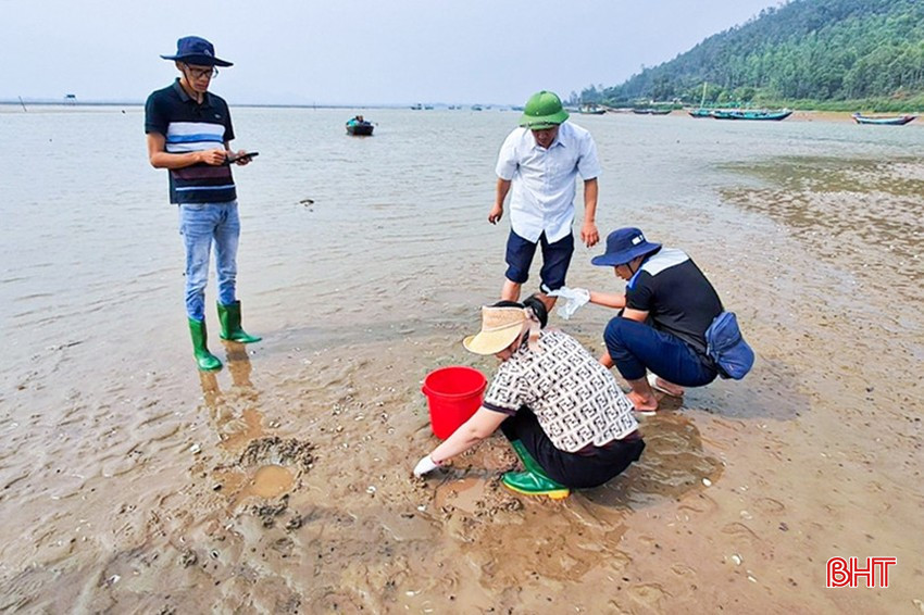 Ngành chuyên môn lấy mẫu kiểm tra ngao chết hàng loạt tại huyện Thạch Hà. Ảnh tư liệu.