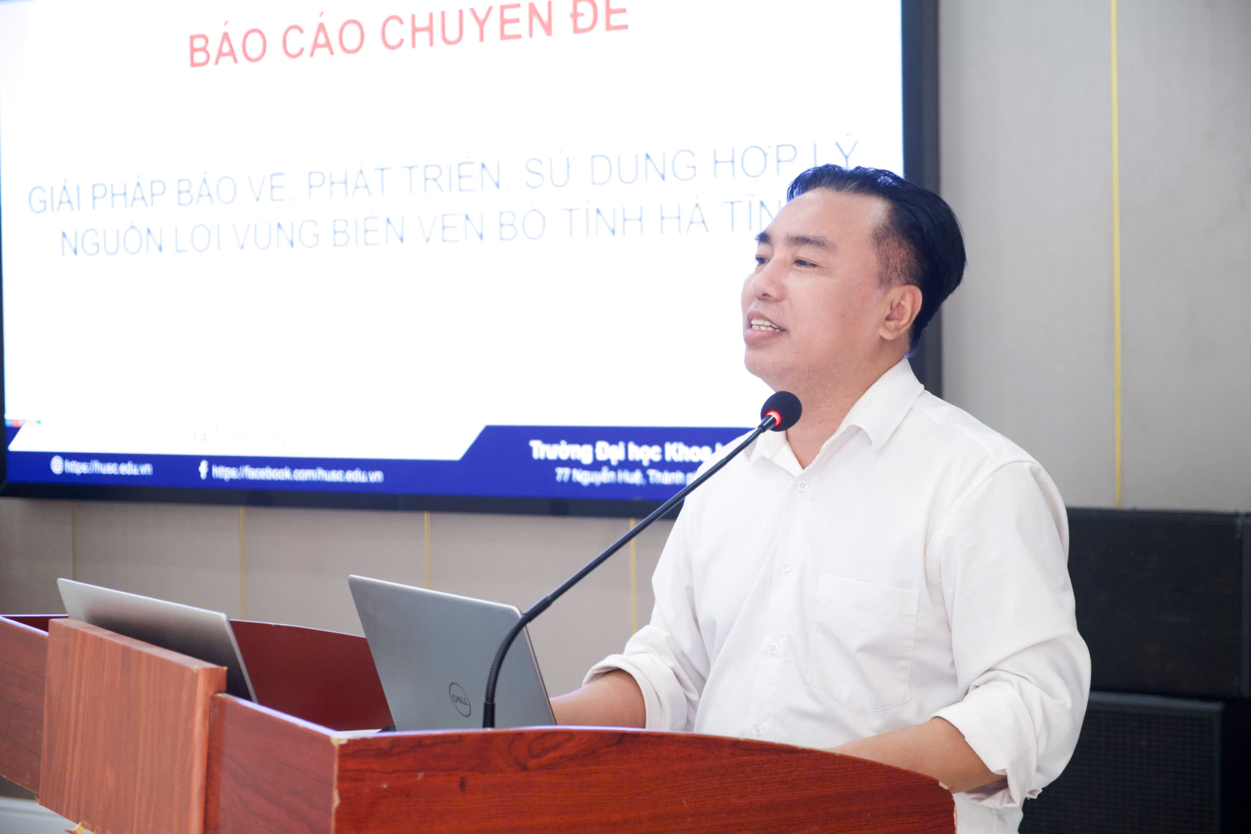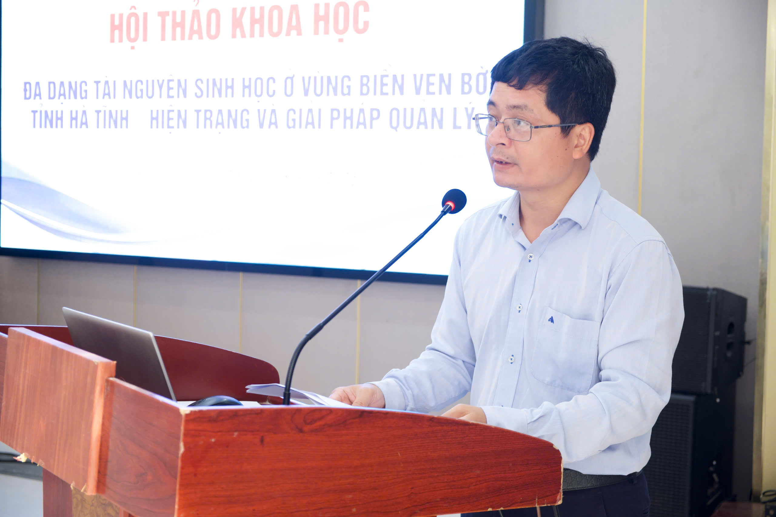 Tiến sĩ, NCS (Nghiên cứu sinh) Nguyễn Duy Thuận, ĐH Phú Xuân Huế trình bày chuyên đề: Đa dạng về thành phần loài cá (PISCES) ở vùng biển ven bờ tỉnh Hà Tĩnh