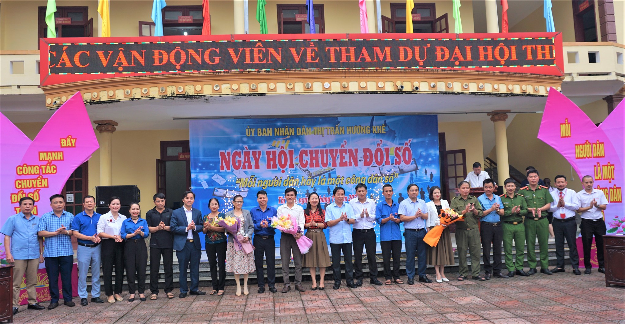 Người dân thị trấn Hương Khê sôi nổi tham gia ngày hội chuyển đổi số