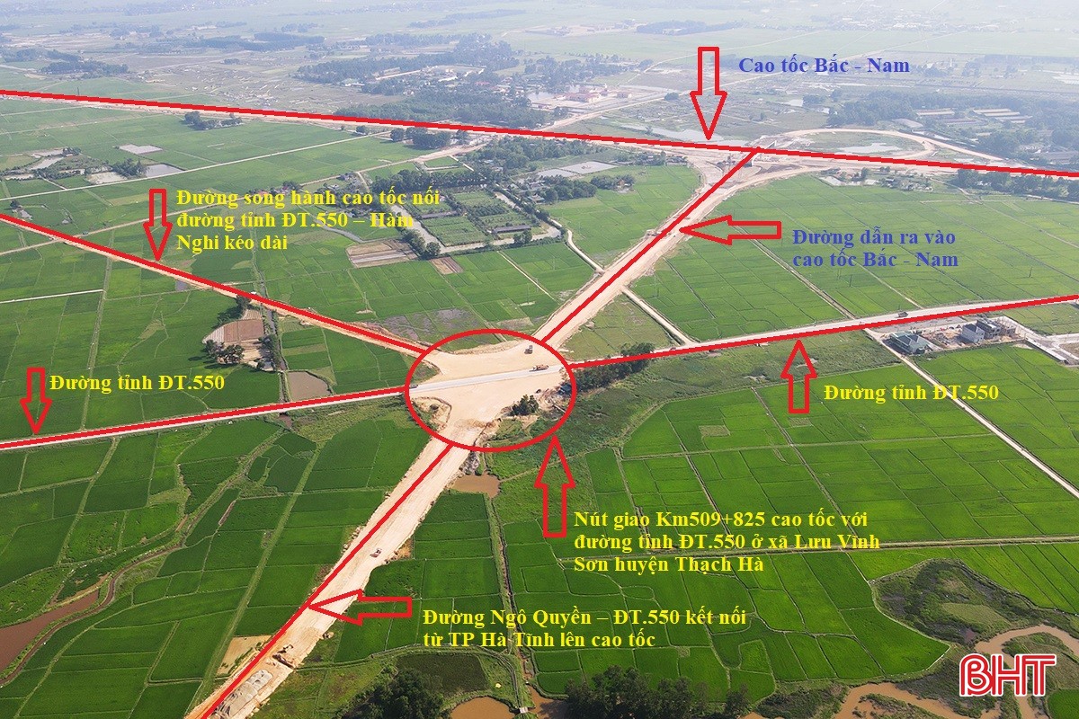 Tuyến đường bộ cao tốc Bắc – Nam qua Hà Tĩnh có tổng chiều dài 107,28 km. Theo thiết kế, tuyến cao tốc qua địa bàn Hà Tĩnh có 6 nút giao liên thông kết nối với đường địa phương. Trong 6 nút giao, người dân TP Hà Tĩnh có thể di chuyển ra vào cao tốc Bắc – Nam qua nút giao giữa Km509+825 với đường tỉnh 550 (ĐT.550) đoạn qua xã Lưu Vĩnh Sơn (Thạch Hà). Nút giao này thuộc dự án thành phần Bãi Vọt - Hàm Nghi, do Tổng Công ty 319 Bộ Quốc phòng đảm nhận thi công.