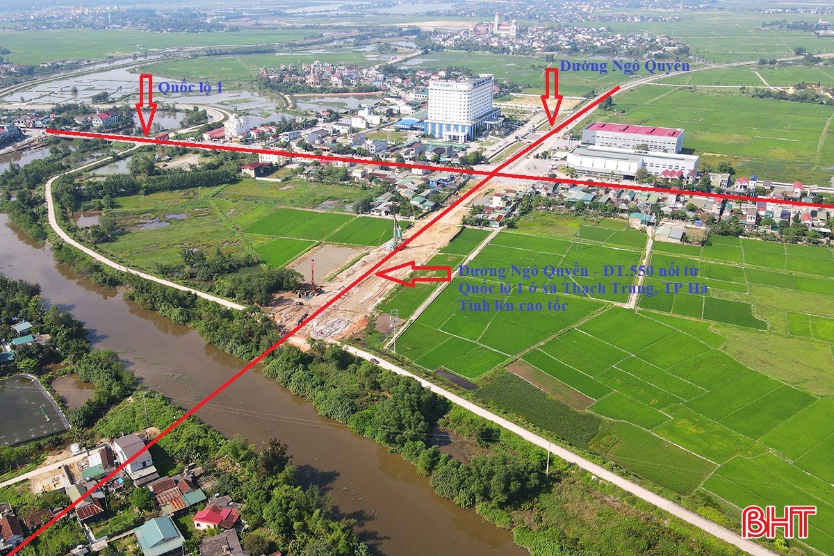 Với chiều dài 5 km, tuyến đường Ngô Quyền - đường tỉnh ĐT.550 vượt đê Trung Linh, khu dân cư, đất nông nghiệp tại các địa phương của TP Hà Tĩnh và huyện Thạch Hà.