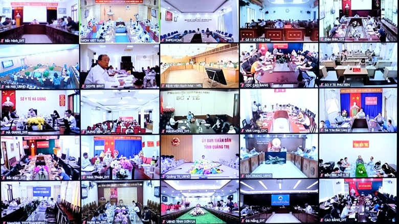 Bộ Y tế tổ chức Hội nghị trực tuyến với 63 tỉnh, thành phố và các bộ, ngành về tăng cường công tác phòng, chống dịch và tiêm chủng phòng COVID-19 ngày 2/8. Ảnh: ĐT