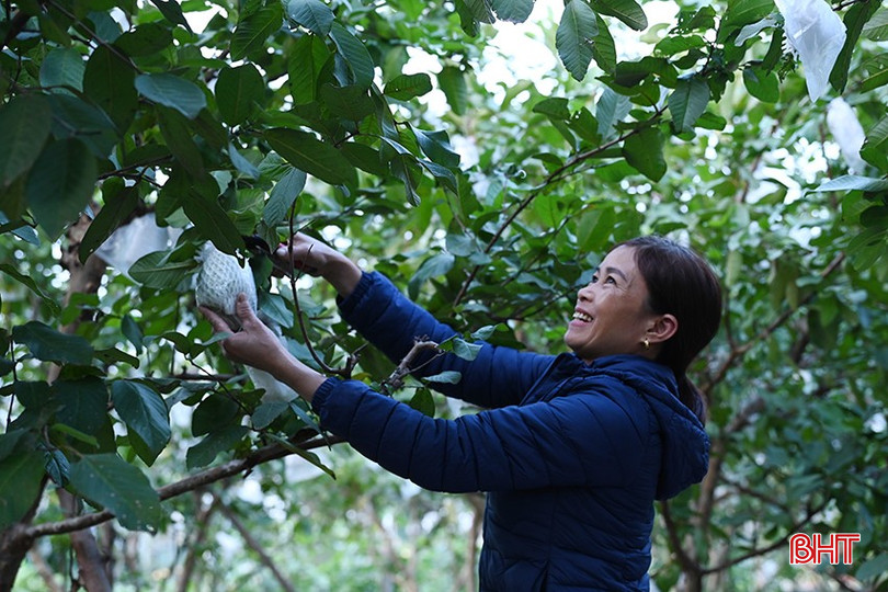 Không chấp nhận thất bại, gia đình chị Hương mạnh dạn phá bỏ toàn bộ vườn cây cũ và chuyển sang trồng ổi với hơn 100 gốc. Đất hợp, khí hậu phù hợp nên vườn ổi phát triển tốt, quả giòn, ngọt, được thị trường ưa chuộng. Ngoài vườn ổi, gia đình chị còn kết hợp nuôi bò, gà… mỗi năm thu về khoảng 200 triệu đồng.
