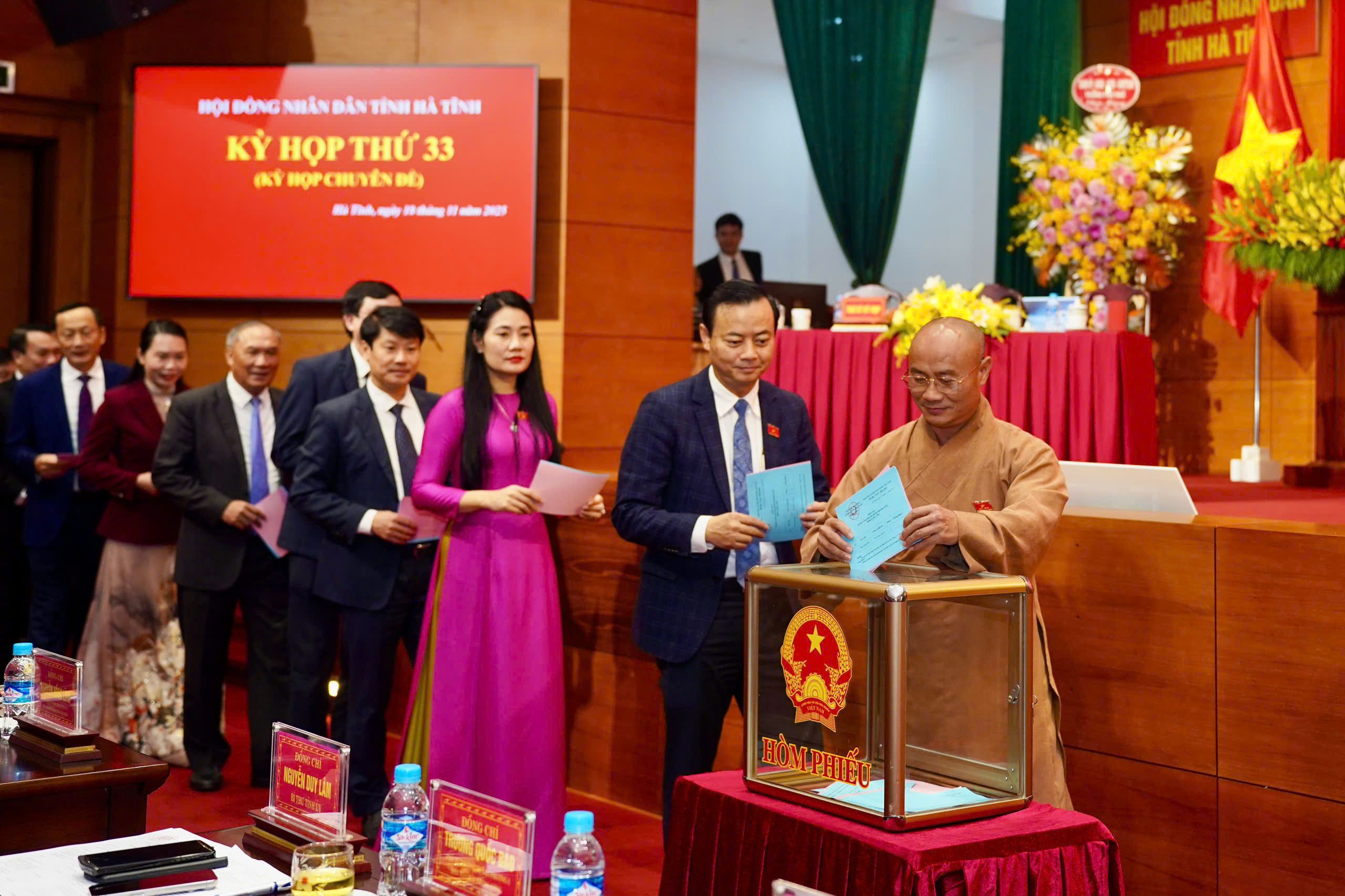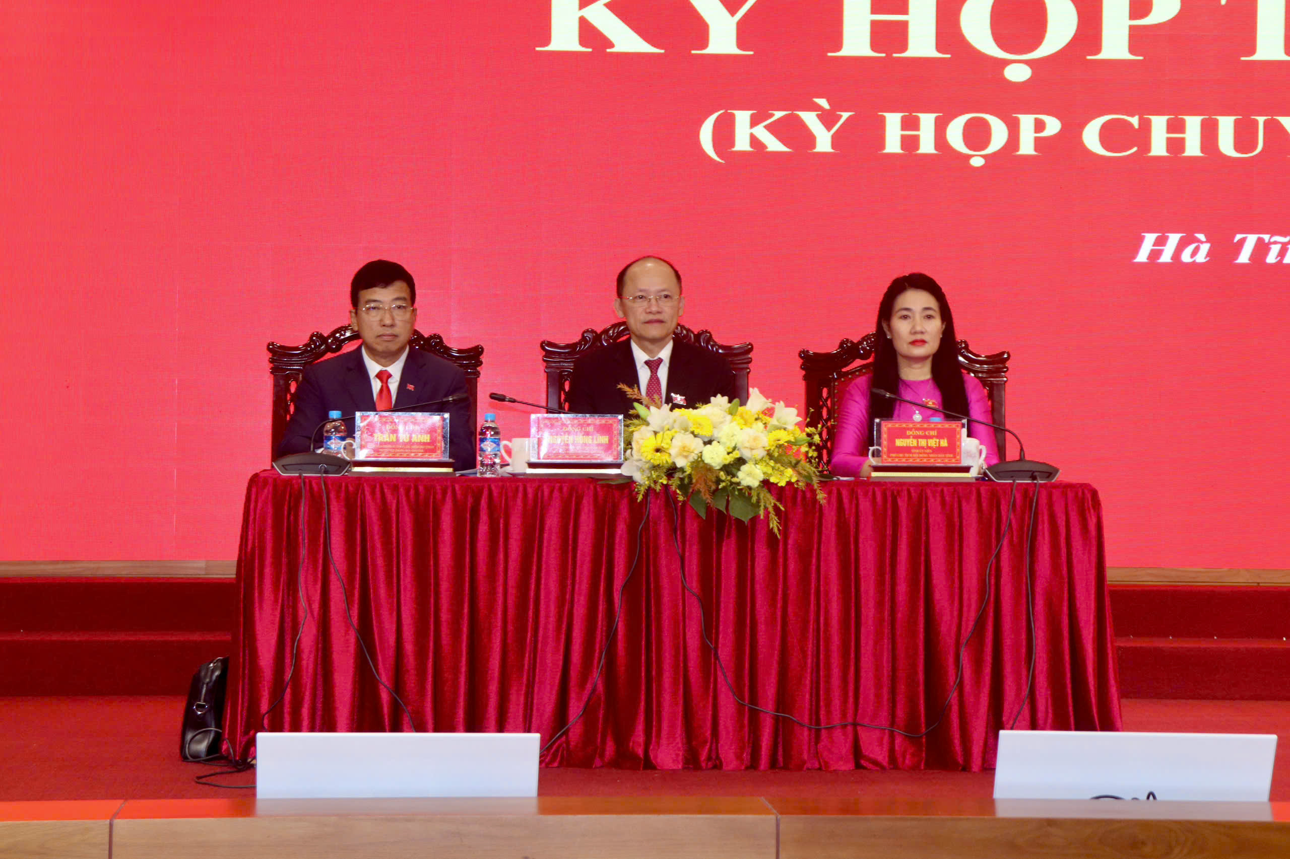 Sáng 18/11, HĐND tỉnh Hà Tĩnh khóa XVIII tổ chức Kỳ họp thứ 33 (kỳ họp chuyên đề) để xem xét, quyết định một số nội dung quan trọng thuộc thẩm quyền. Tham dự kỳ họp có Phó Vụ trưởng Vụ địa phương 1 (Ban Tổ chức Trung ương) - Trương Quốc Bảo; Phó Bí thư Tỉnh ủy, Phó Chủ tịch UBND thành phố Huế Nguyễn Chí Tài; Phó Chủ tịch UBND thành phố Huế Phan Quý Phương. Về phía Hà Tĩnh có Bí thư Tỉnh ủy Nguyễn Duy Lâm; Phó Bí thư Tỉnh ủy Phan Thiên Định; các đồng chí Ủy viên Ban Thường vụ Tỉnh ủy, đại biểu HĐND tỉnh. Đồng chí Nguyễn Hồng Lĩnh - Phó Bí thư Thường trực Tỉnh ủy, Chủ tịch HĐND tỉnh và các đồng chí Phó Chủ tịch HĐND tỉnh: Trần Tú Anh, Nguyễn Thị Việt Hà chủ tọa kỳ họp.
