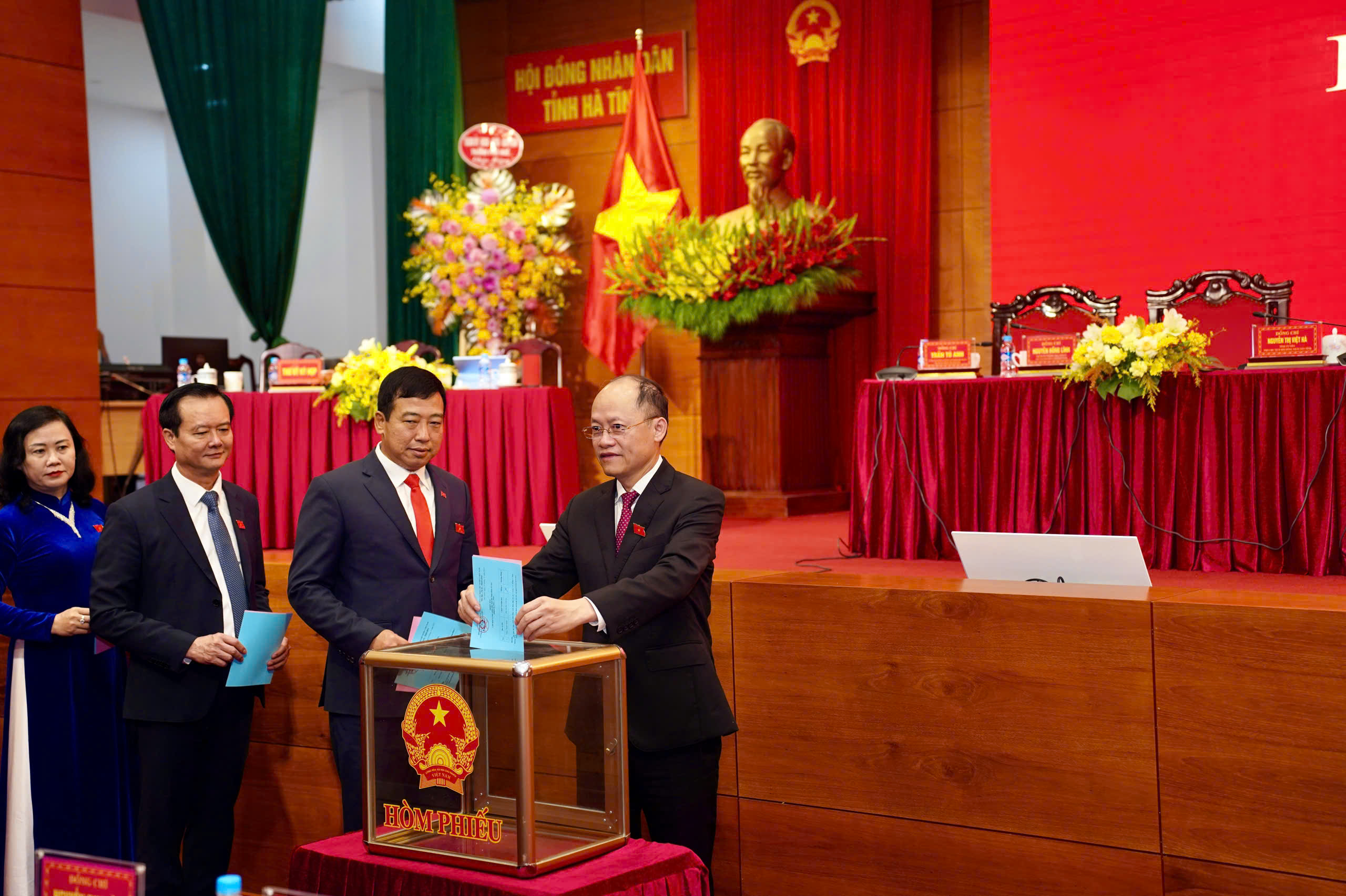 Các đại biểu HĐND tỉnh bỏ phiếu bầu Chủ tịch UBND tỉnh và Phó Chủ tịch HĐND tỉnh.