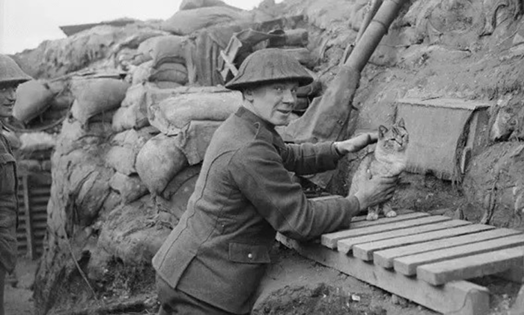 Ngoài các chiến hào, loài mèo còn được đưa lên tàu chiến để làm nhiệm vụ săn chuột trong Thế chiến I.