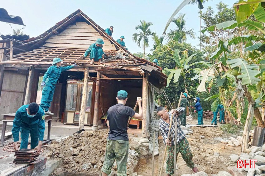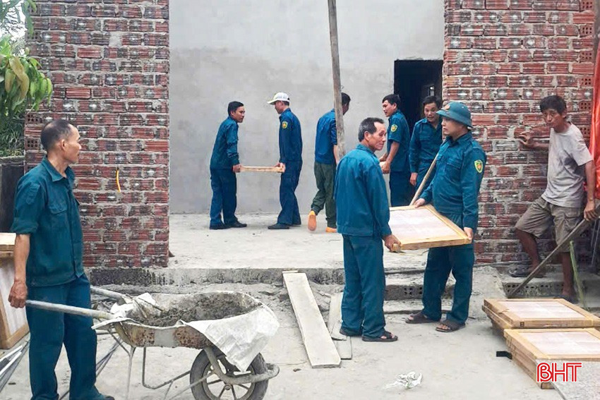 Dân quân xã Việt Tiến (Thạch Hà) hỗ trợ xây dựng “Ngôi nhà 10 nghìn đồng” cho dân quân có hoàn cảnh khó khăn về nhà ở.