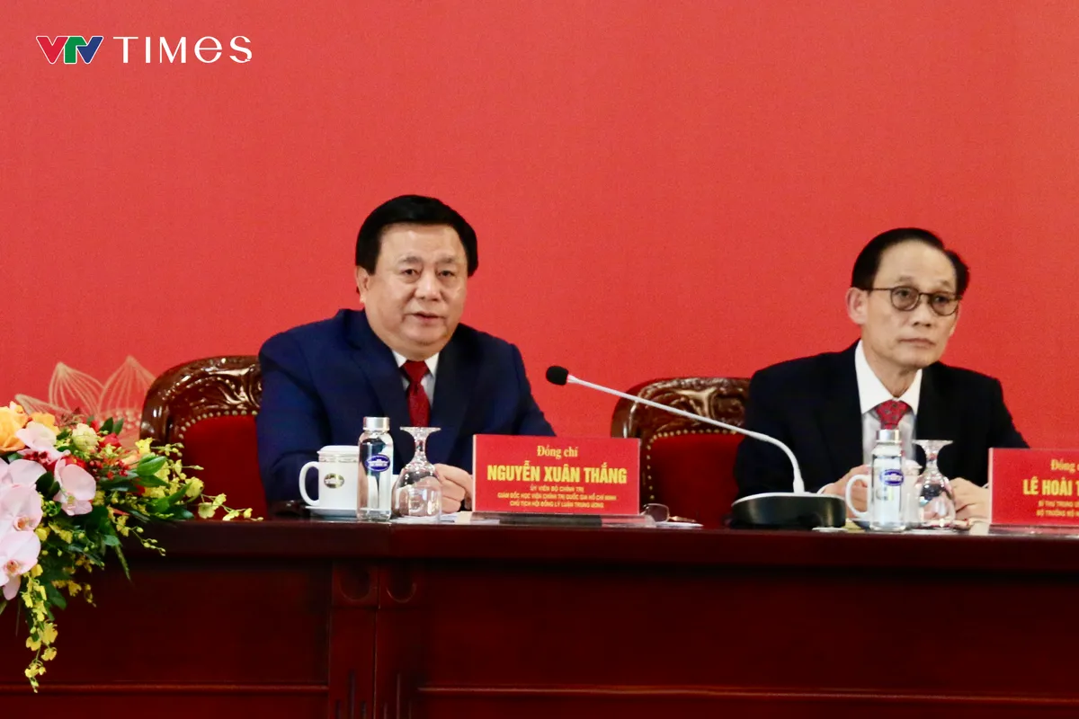 Giám đốc Học viện Chính trị quốc gia Hồ Chí Minh, Chủ tịch Hội đồng Lý luận Trung ương Nguyễn Xuân Thắng trả lời báo chí