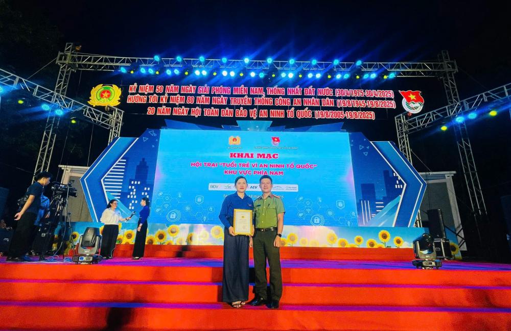 Tại chương trình, đồng chí Lê Thị Việt Nga - Bí thư Đoàn TNCS Hồ Chí Minh phường Đại Nài, thành phố Hà Tĩnh, tỉnh Hà Tĩnh vinh dự 1 trong 80 đoàn viên thanh viên xuất sắc trong phong trào “Toàn dân bảo vệ an ninh Tổ quốc”, giai đoạn 2020-2025 được tuyên dương.