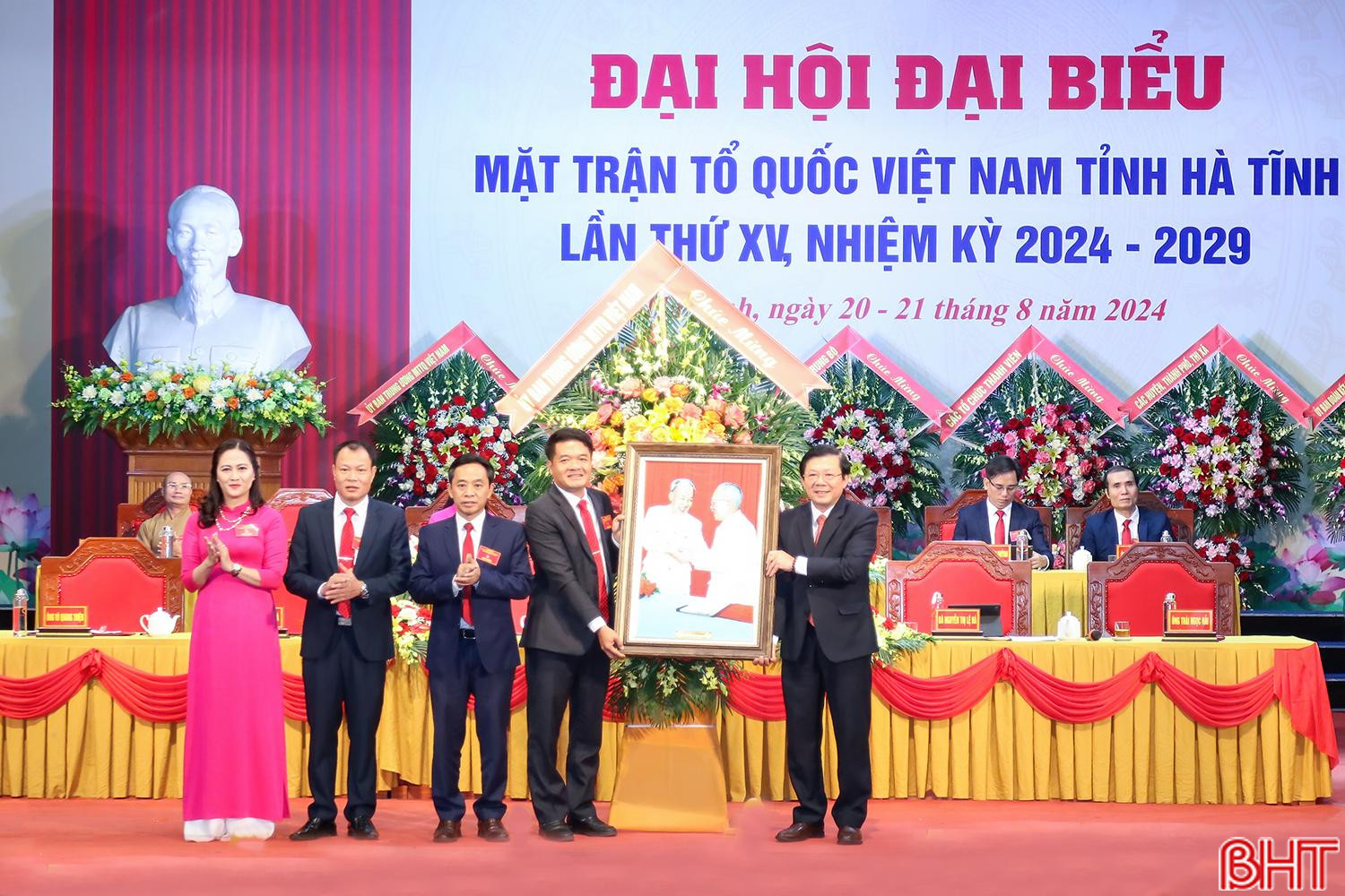 Thay mặt BCH Đảng bộ tỉnh, Bí thư Tỉnh ủy Hoàng Trung Dũng, Chủ tịch UBND tỉnh Võ Trọng Hải trao tặng đại hội bức trướng mang dòng chữ "Ủy ban MTTQ tỉnh đoàn kết - dân chủ - đổi mới - phát triển".