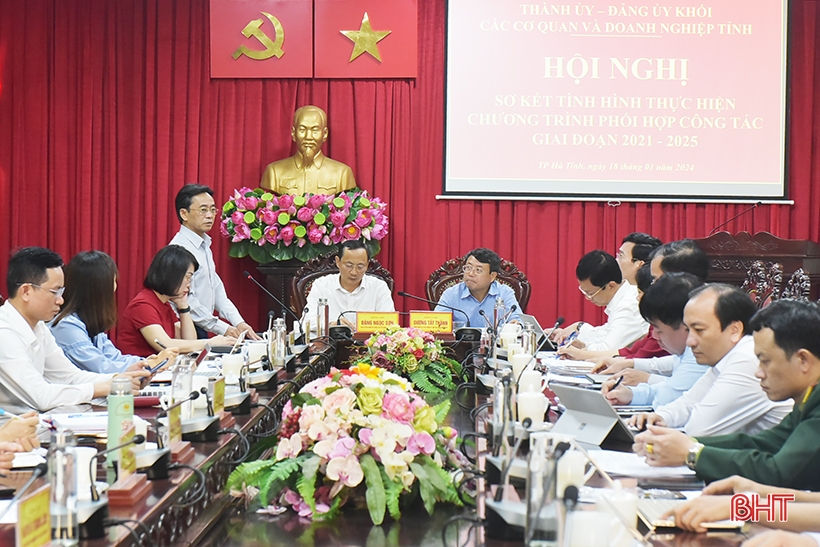 Chiều 18/1, Ban Thường vụ Thành ủy Hà Tĩnh tổ chức hội nghị đánh giá tình hình thực hiện chương trình phối hợp hoạt động với Ban Thường vụ Đảng ủy Khối CCQ&DN tỉnh giai đoạn 2021 - 2025.