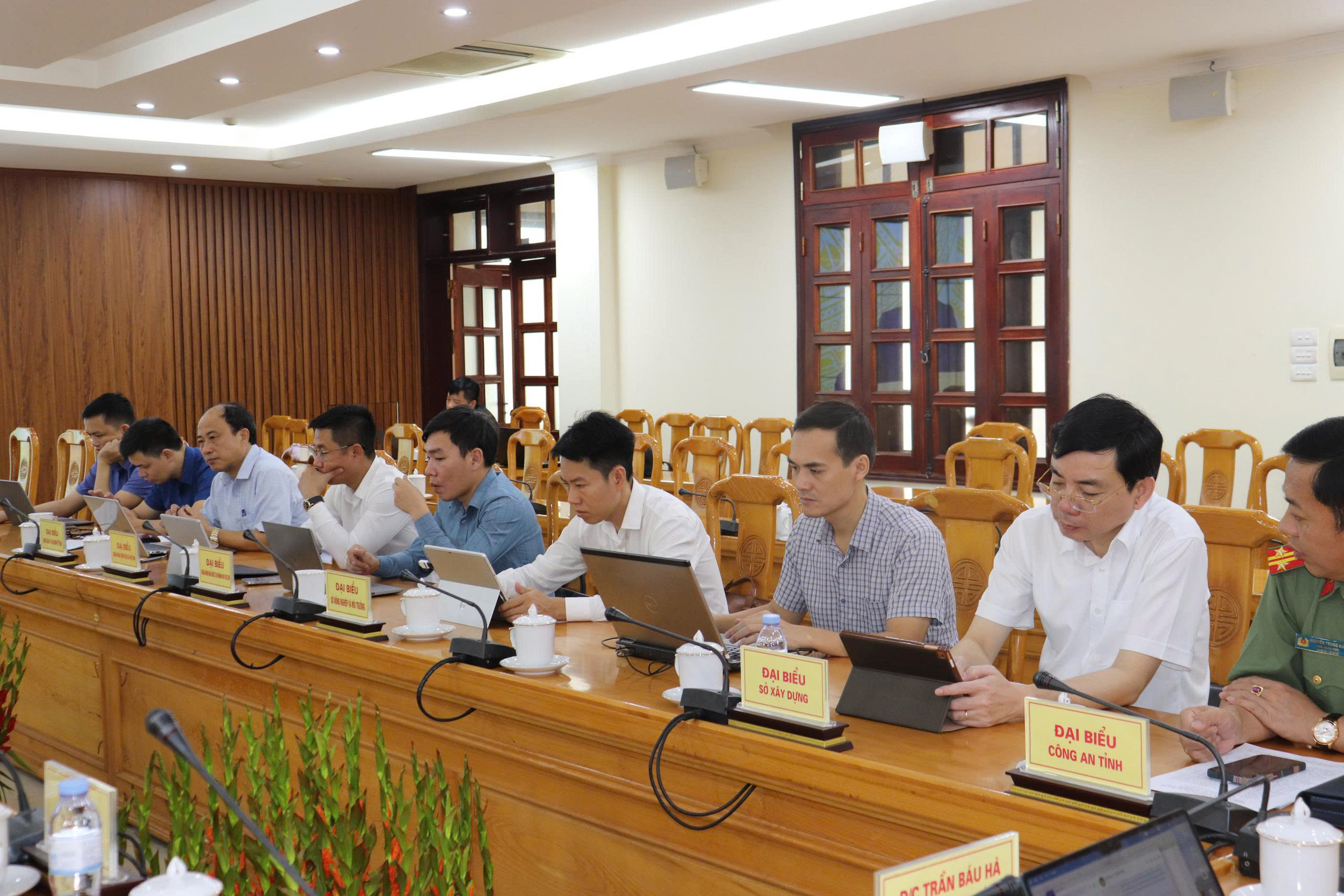 Tại điểm cầu Hà Tĩnh, đồng chí Trần Báu Hà - Phó Chủ tịch UBND tỉnh chủ trì cùng lãnh đạo Sở Xây dựng và các thành viên Ban chỉ đạo phát triển nhà ở xã hội tỉnh.