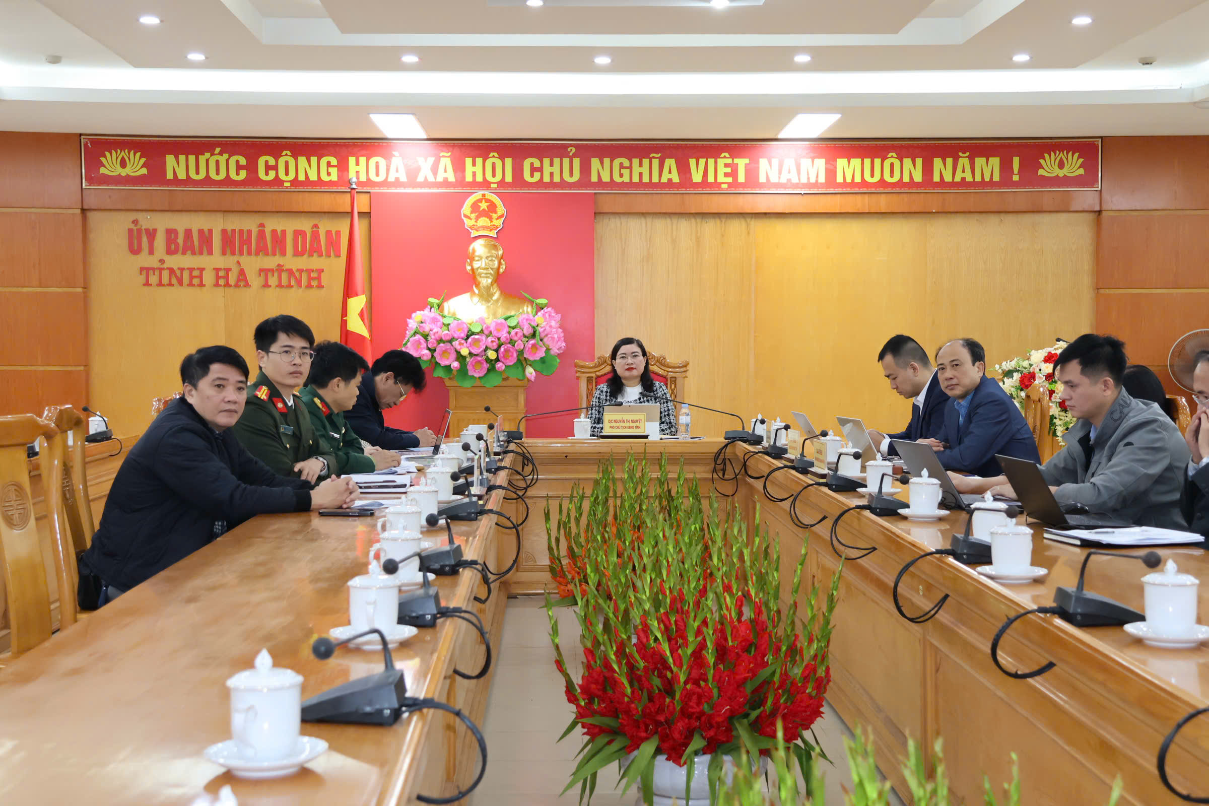 Phó Chủ tịch UBND tỉnh Nguyễn Thị Nguyệt điều hành điểm cầu Hà Tĩnh.