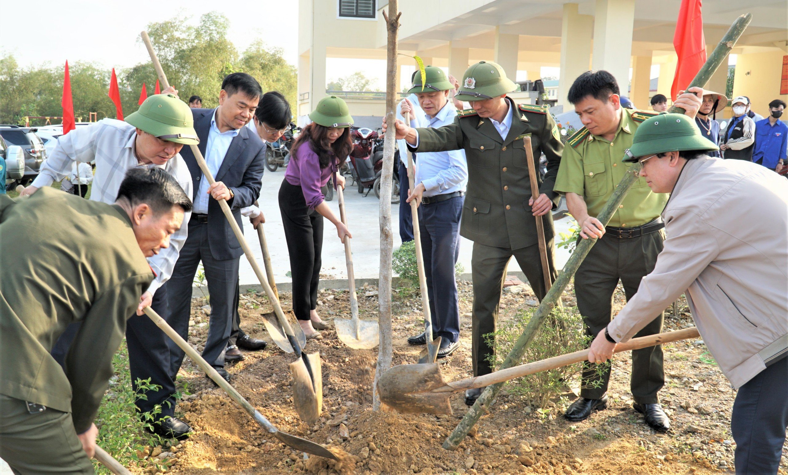 Các đồng chí lãnh đạo tỉnh và huyện tham gia trồng cây đầu xuân.