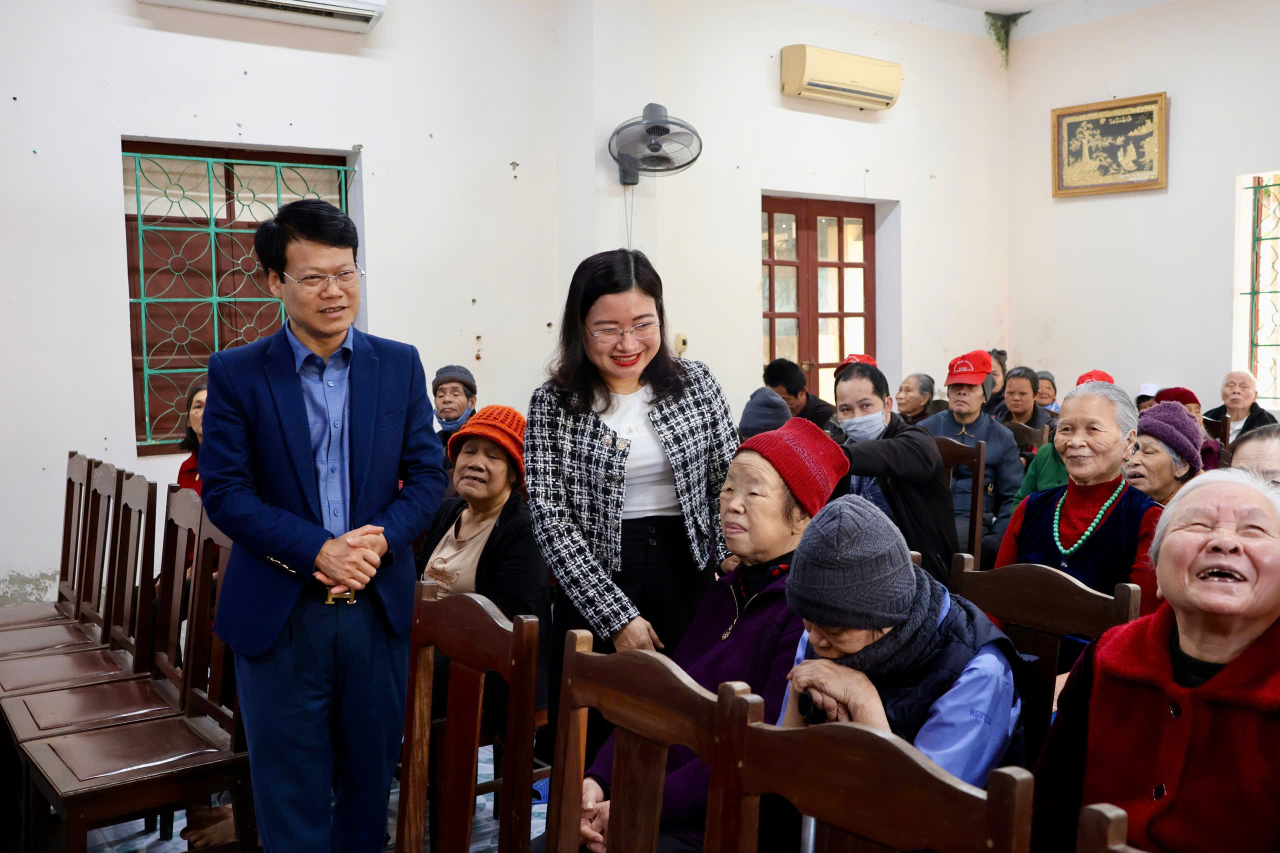 Phó Chủ tịch UBND tỉnh Nguyễn Thị Nguyệt ân cần hỏi thăm các cụ đang sinh hoạt tại Trung tâm Điều dưỡng người có công và bảo trợ xã hội Hà Tĩnh.