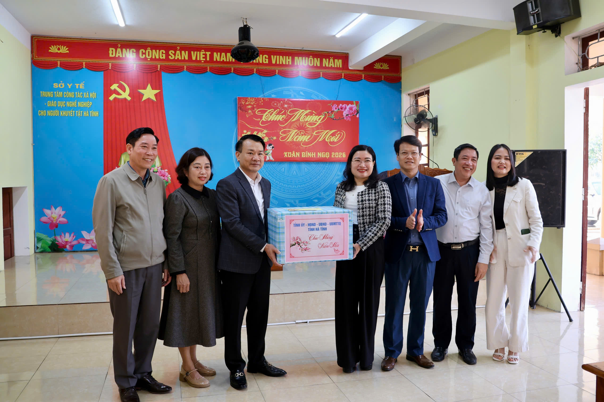 Tiếp đó, đoàn cũng đã tới chúc Tết Trung tâm Hỗ trợ phát triển giáo dục hòa nhập trẻ khuyết tật Hồng Lĩnh.