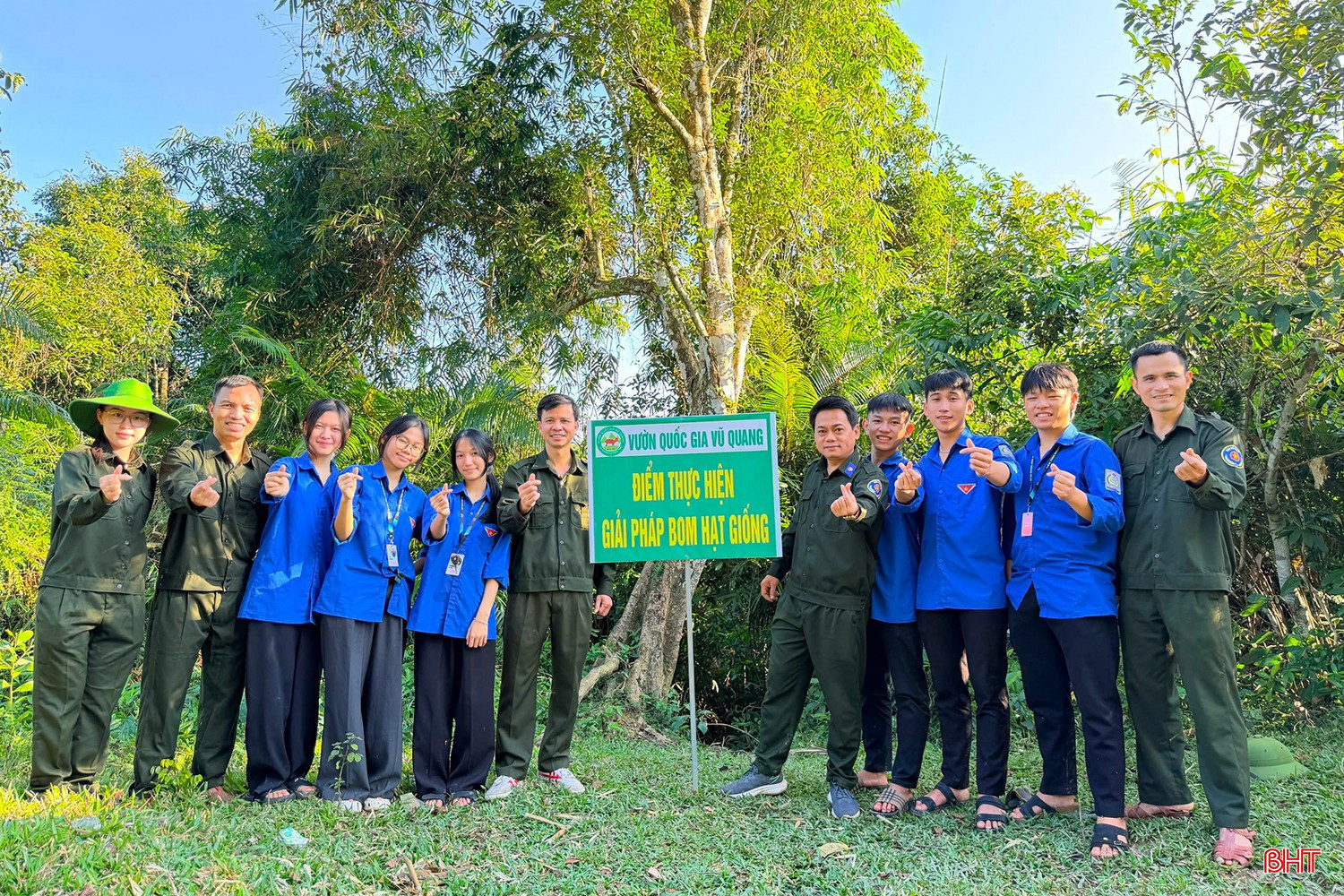 Thực hiện định hướng bảo vệ, phục hồi và phát triển rừng bền vững gắn với bảo tồn đa dạng sinh học, thời gian qua, các chủ rừng, đơn vị quản lý trong đó có Vườn Quốc gia Vũ Quang cũng đã tích cực phối hợp cùng các tổ chức chính trị - xã hội, trường học trên địa bàn triển khai giải pháp “bom hạt giống”.