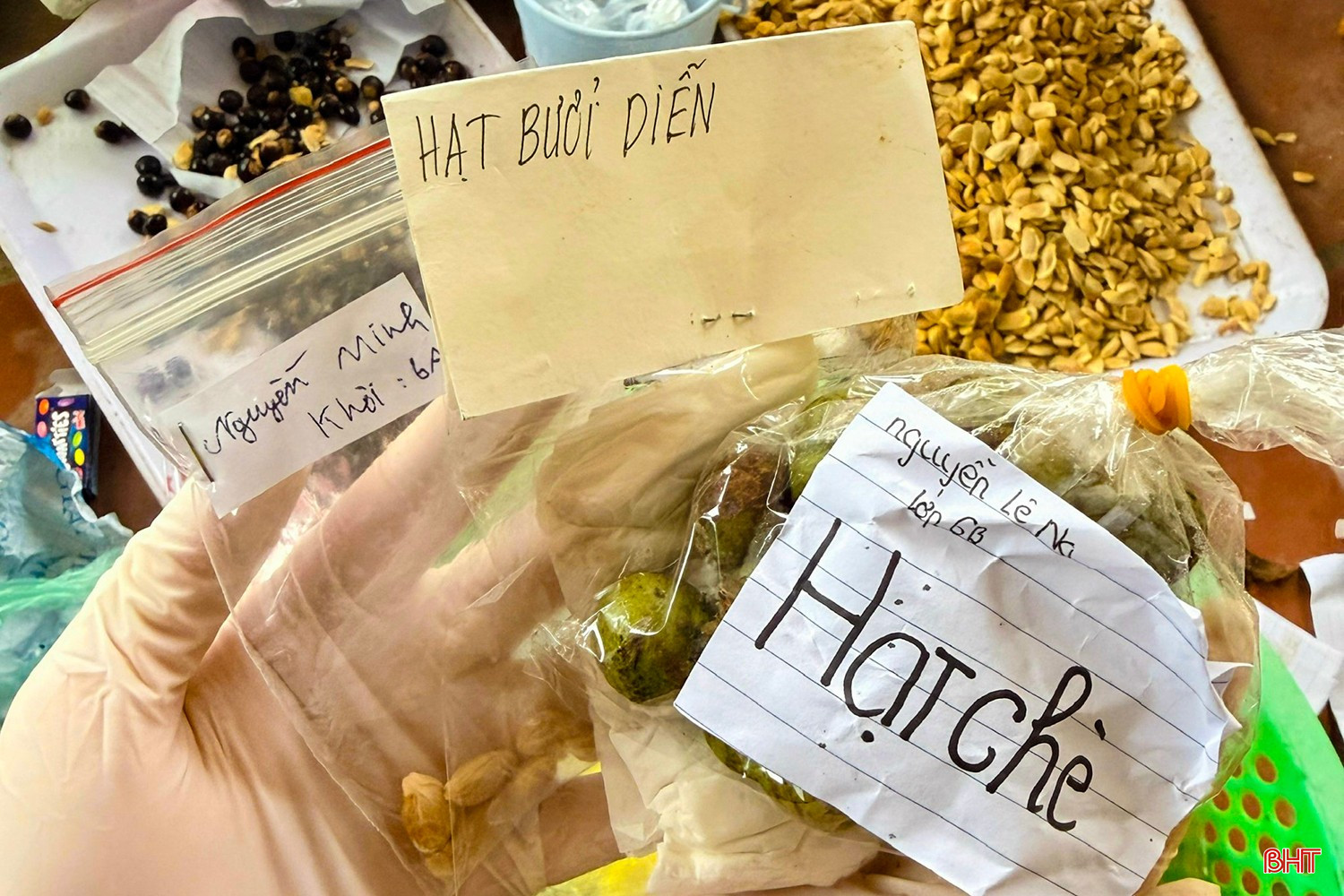 Các thầy, cô trực tiếp tham gia phân loại hạt giống được thu gom từ các em học sinh để chuyển sang Vườn Quốc gia Vũ Quang.