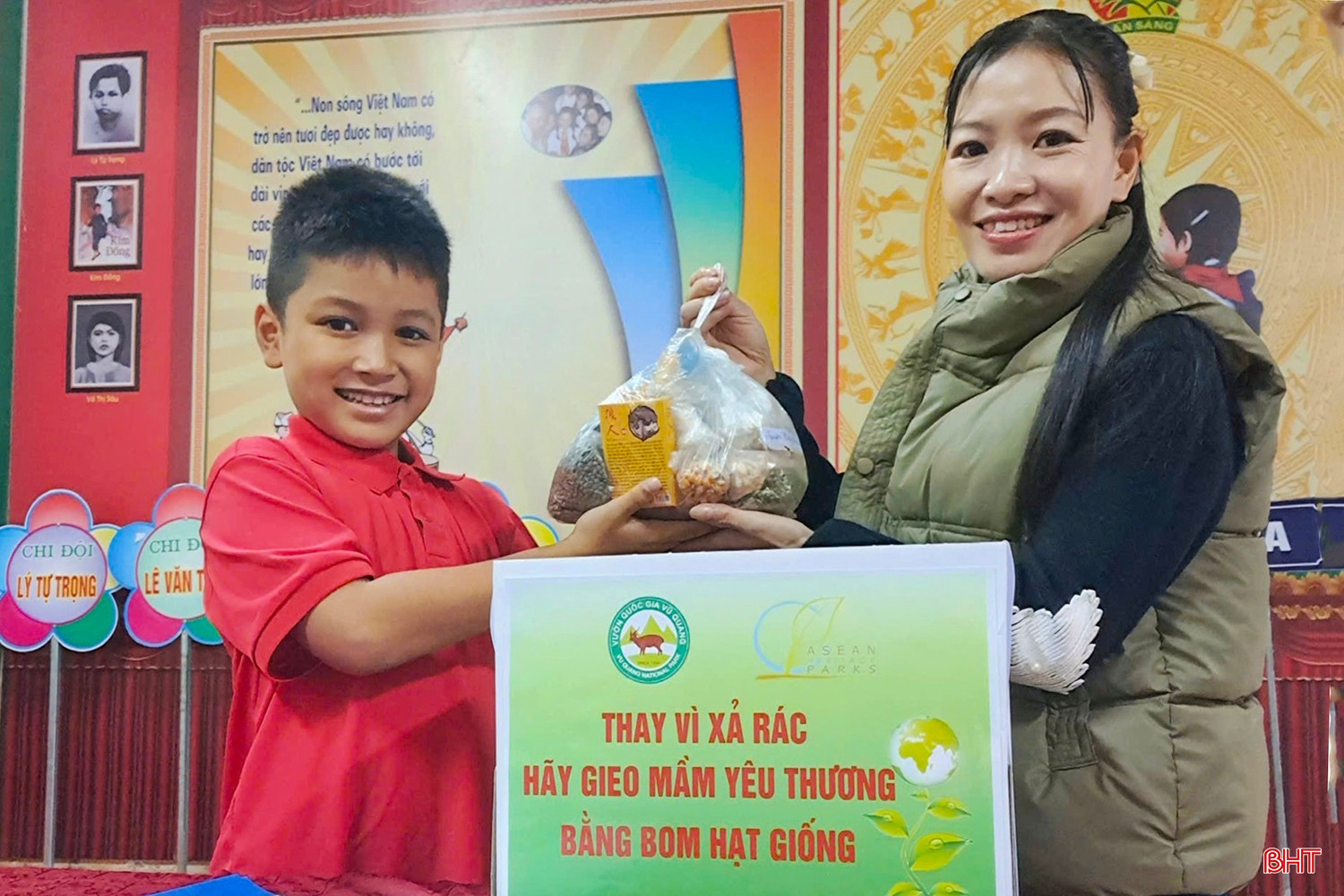 Thầy Nguyễn Bá Thành - Hiệu trưởng Trường THCS Phan Đình Phùng (xã Vũ Quang) cho biết: “Khác với các chiến dịch trồng cây truyền thống, "bom hạt giống" là giải pháp sáng tạo với cách làm mới, lần đầu được triển khai tại các trường học. Đáng chú ý, hạt giống cây rừng và cây ăn quả đều do chính học sinh trực tiếp thu gom và trao tặng, góp phần nâng cao ý thức về bảo vệ môi trường, phát triển rừng từ những việc làm giản dị trong cuộc sống”.