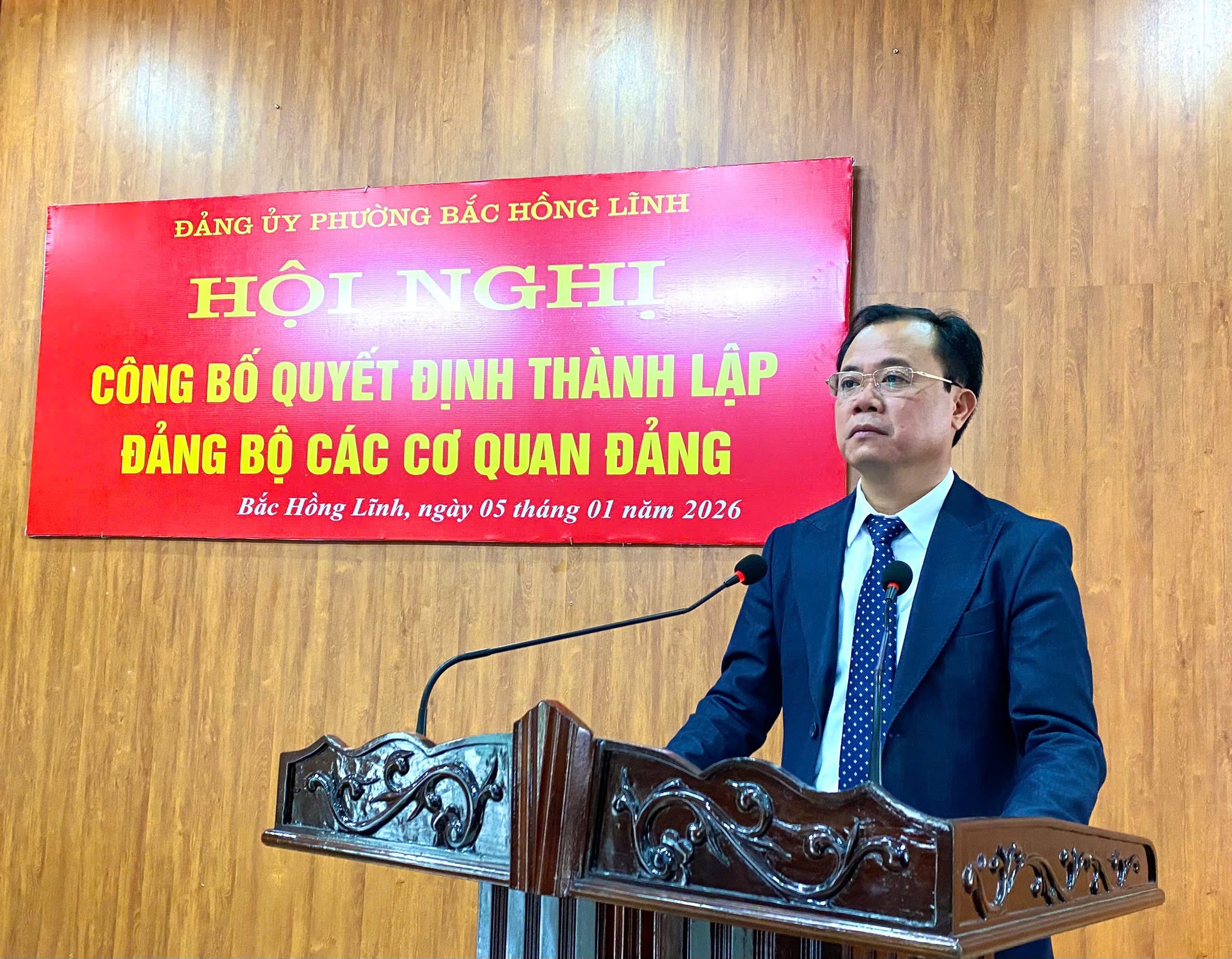 Thực hiện chủ trương sắp xếp, kiện toàn tổ chức bộ máy của Đảng theo hướng tinh gọn, hoạt động hiệu lực, hiệu quả, phường Bắc Hồng Lĩnh vừa tổ chức hội nghị công bố quyết định thành lập Đảng bộ các cơ quan Đảng phường Bắc Hồng Lĩnh.