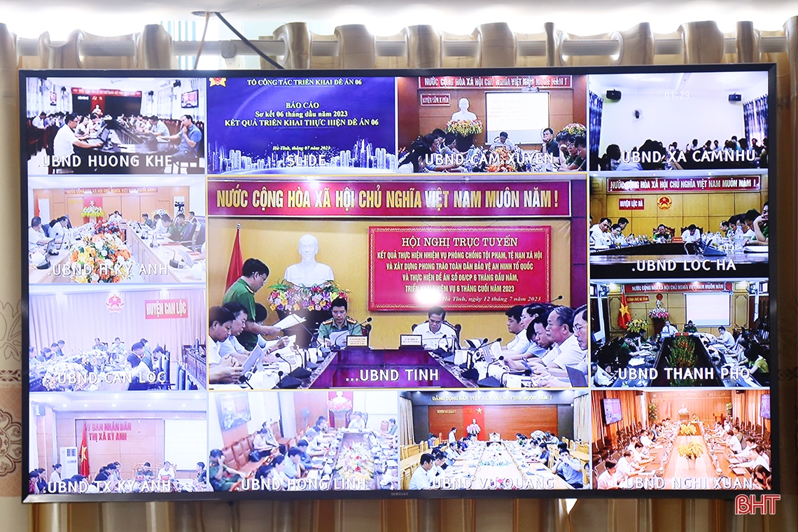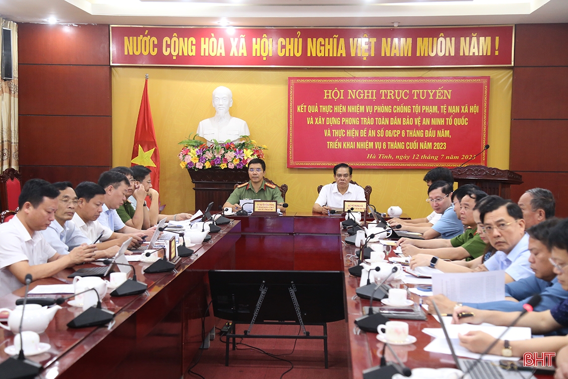 Tại hội nghị, đại diện BCĐ 138 tỉnh báo cáo kết quả kết quả công tác phòng, chống tội phạm, tệ nạn xã hội và xây dựng phong trào toàn dân bảo vệ ANTQ 6 tháng đầu năm, nhiệm vụ trọng tâm 6 tháng cuối năm 2023; Tổ công tác thực hiện Đề án 06 tỉnh báo cáo kết quả triển khai thực hiện “Đề án phát triển ứng dụng dữ liệu dân cư, định danh và xác thực điện tử phục vụ chuyển đổi số quốc gia giai đoạn 2022 – 2025, tầm nhìn đến năm 2030 trên địa bàn tỉnh Hà Tĩnh”.