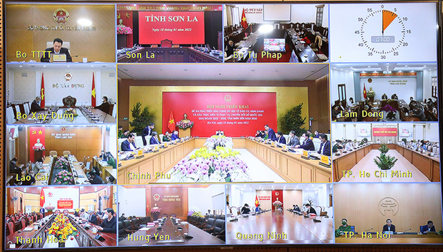 Hội nghị trực tuyến triển khai Đề án đẩy mạnh ứng dụng dữ liệu dân cư, định danh và xác thực điện tử phục vụ chuyển đổi số quốc gia giai đoạn 2020 - 2025, tầm nhìn đến năm 2030 tổ chức ngày 18/1/2022. Ảnh: Cổng TTĐT Bộ Quốc phòng