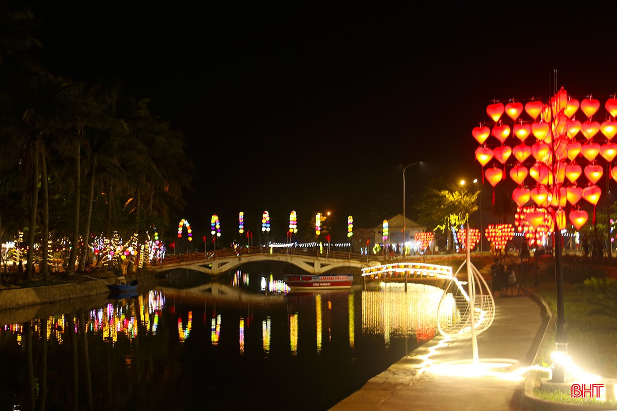 Ở các góc đường, hàng nghìn chiếc đèn lồng được trang trí trên cây xanh đủ sắc màu mang đến một không gian mới lạ.