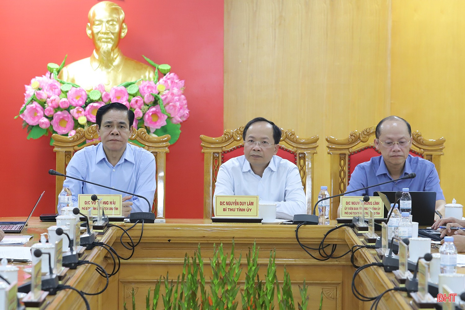 Bí thư Tỉnh ủy Nguyễn Duy Lâm, Chủ tịch UBND tỉnh Võ Trọng Hải, Phó Chủ tịch Thường trực UBND tỉnh Nguyễn Hồng Lĩnh, chủ trì cuộc họp.