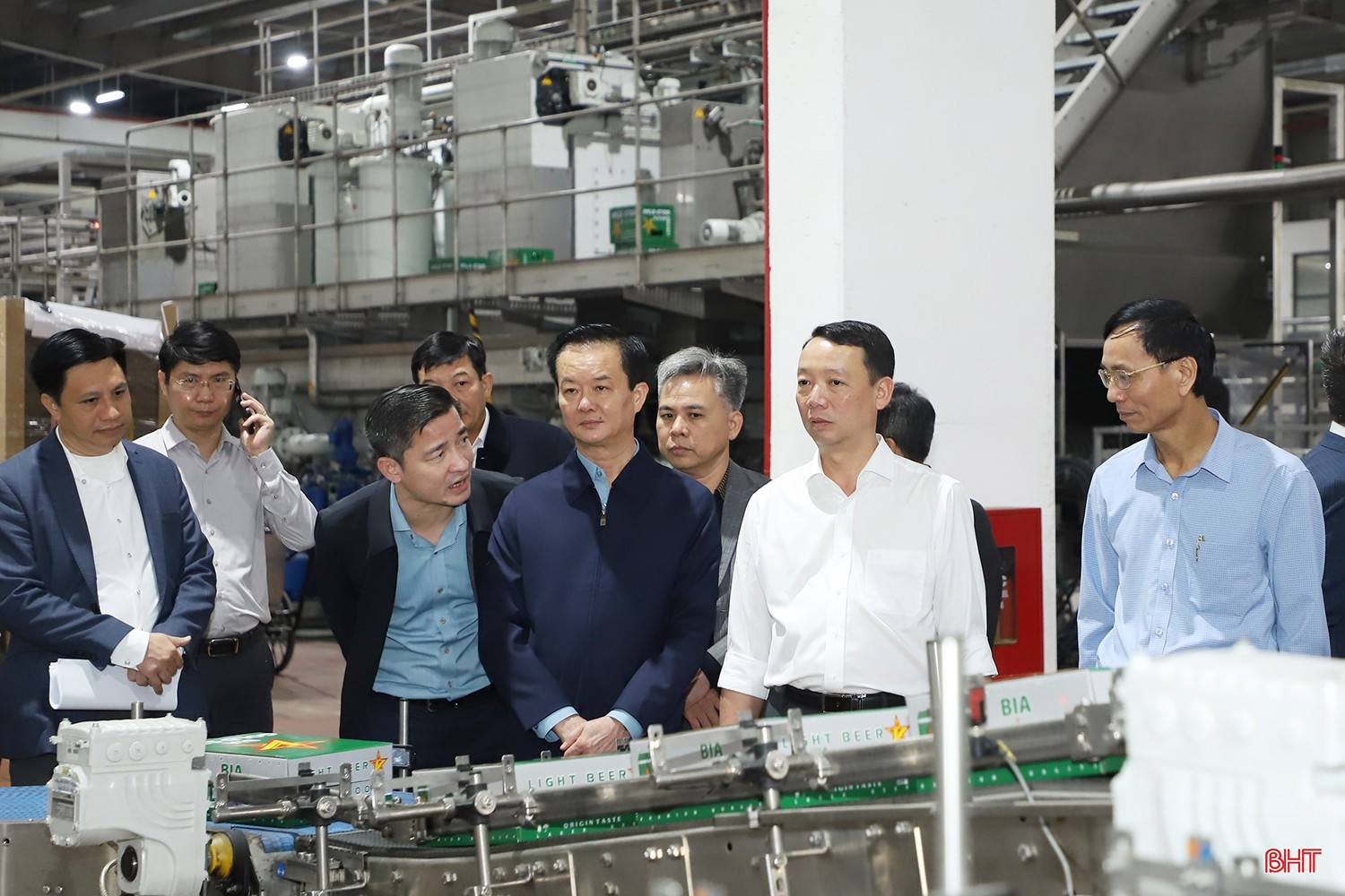 Chủ tịch UBND tỉnh Phan Thiên Định và đoàn công tác kiểm tra hoạt động sản xuất của Công ty Cổ phần Tập đoàn Bia rượu và Nước giải khát Sao Vàng tại Cụm công nghiệp Cổng Khánh 2.