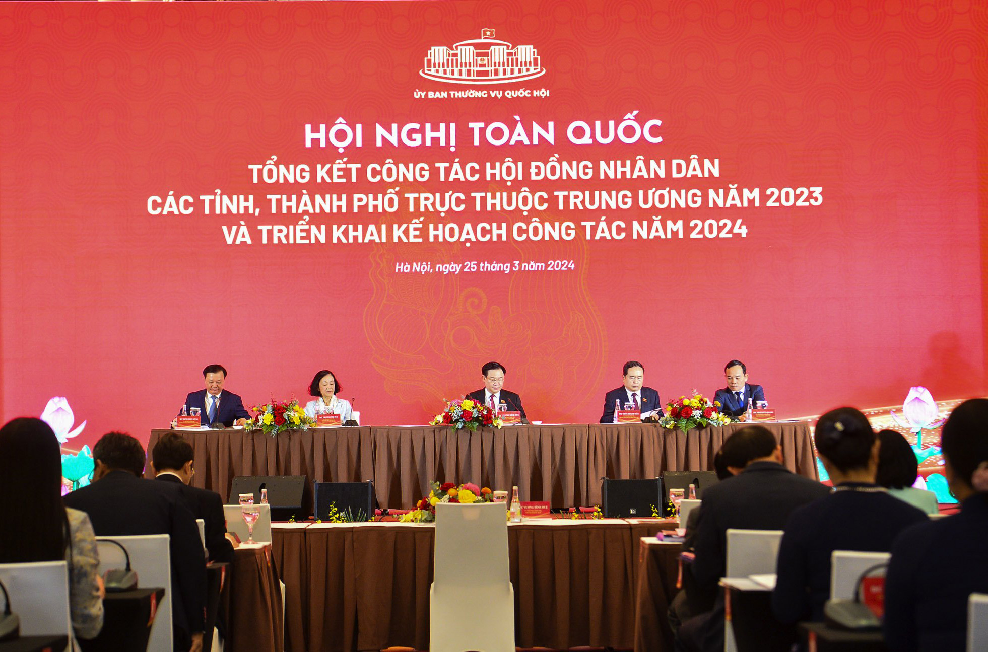 Ngày 25/3, tại Hà Nội, Ủy ban Thường vụ Quốc hội tổ chức hội nghị toàn quốc tổng kết công tác HĐND các tỉnh, thành phố trực thuộc Trung ương năm 2023 và triển khai kế hoạch công tác năm 2024. Chủ tịch Quốc hội Vương Đình Huệ cùng các đồng chí lãnh đạo Đảng, Quốc hội, Chính phủ và TP Hà Nội chủ trì.