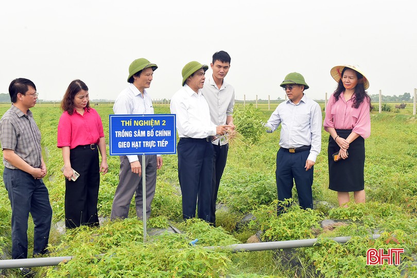 Đoàn kiểm tra dự án “Ứng dụng khoa học công nghệ xây dựng mô hình trồng thử nghiệm cây sâm bố chính tại huyện Thạch Hà".