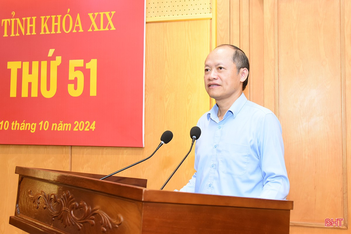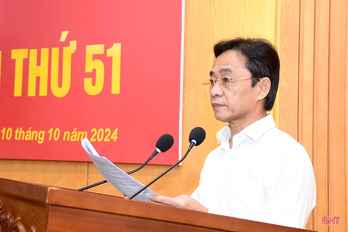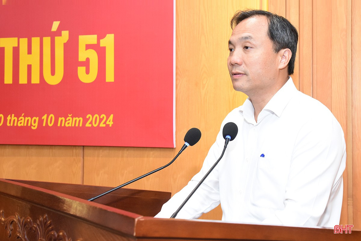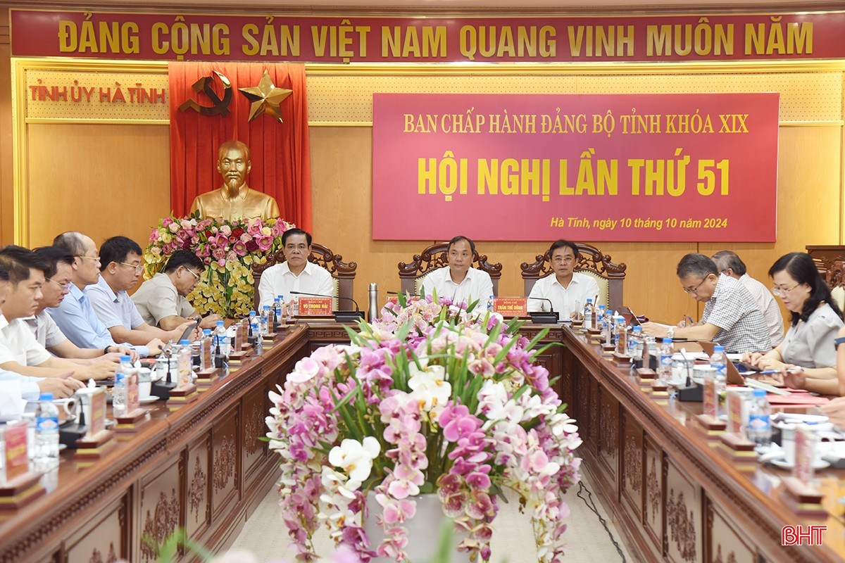 Các đồng chí Thường trực Tỉnh ủy chủ trì hội nghị.Sáng 10/10, Ban Chấp hành Đảng bộ tỉnh Hà Tĩnh khóa XIX tổ chức Hội nghị lần thứ 51 đánh giá tình hình kinh tế - xã