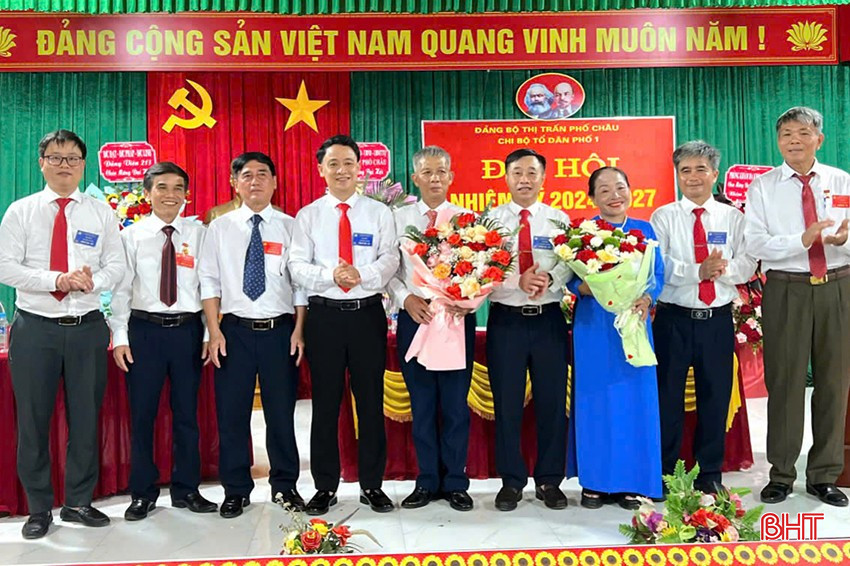Đảng ủy thị trấn Phố Châu (Hương Sơn) tặng hoa chúc mừng cấp ủy Chi bộ tổ dân phố 1.